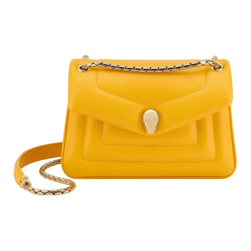 BVLGARI Serpenti Reverse Телячья кожа Сумка с цепочкой Сумка через плечо Маленькая Женская Желтая