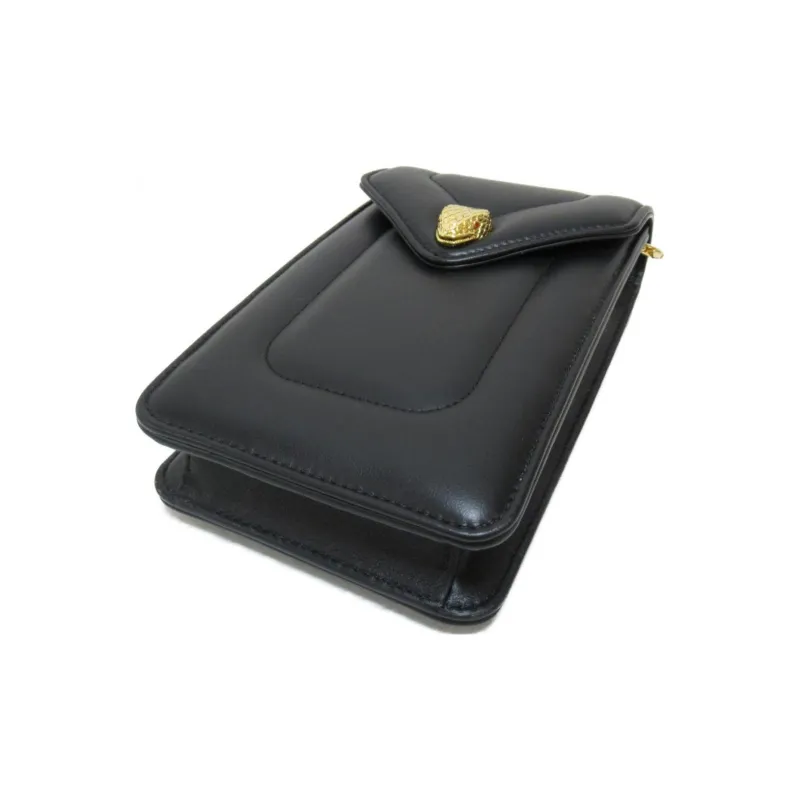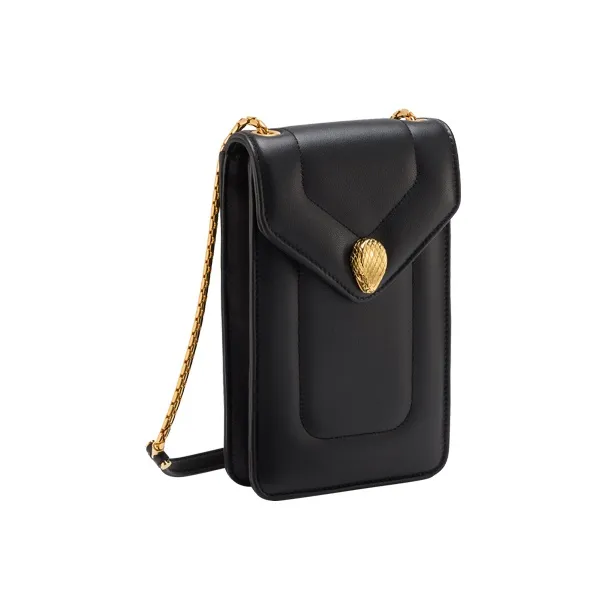 BVLGARI Serpenti Reverse Телячья кожа Сумка через плечо Чехол для телефона Женские Черный