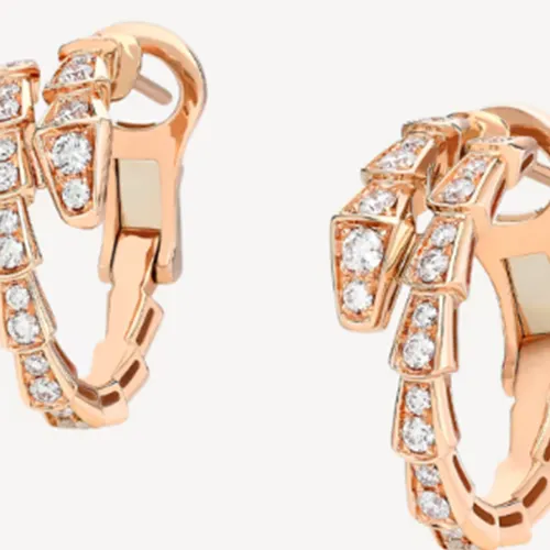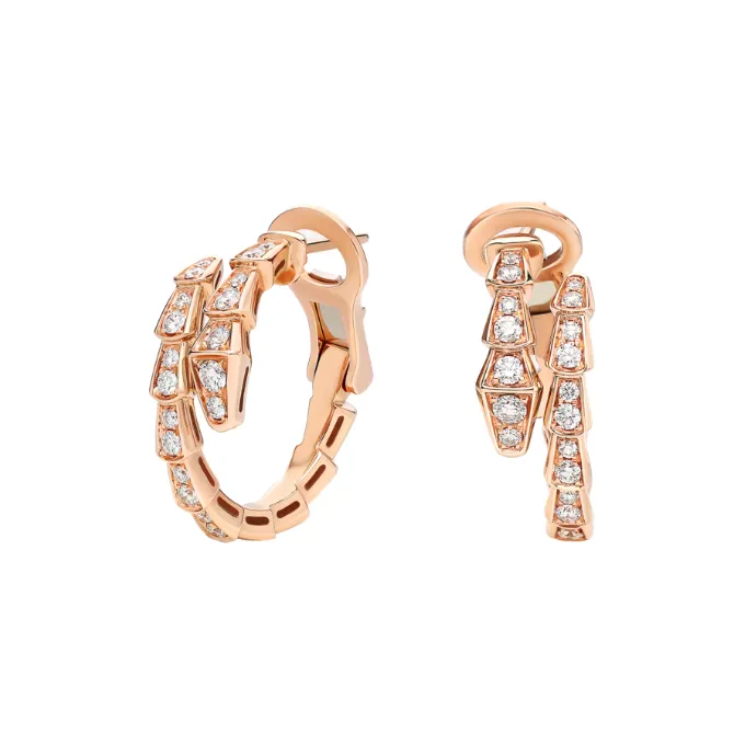 BVLGARI Serpenti Viper Серьги Серьги Serpenti Viper В Виде Колец, Розовое Золото 18 Карат, Сплошное Бриллиантовое Паве