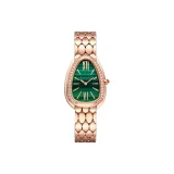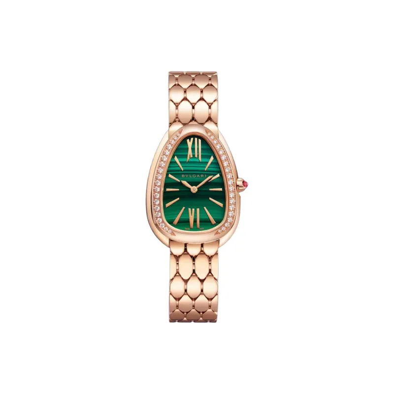 BVLGARI Serpenti Series Женские часы Кварцевый механизм 18K Розовое золото Ремешок 33 мм Зеленый циферблат
