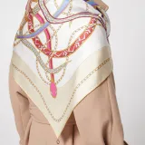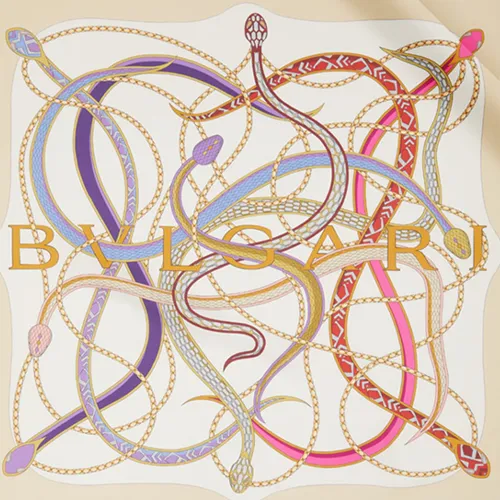 BVLGARI Serpenti 75 Платок Тонкая Шелковая Саржа Цвета Белого Агата С Принтом, Металлическая Подвеска BVLGARI BVLGARI.