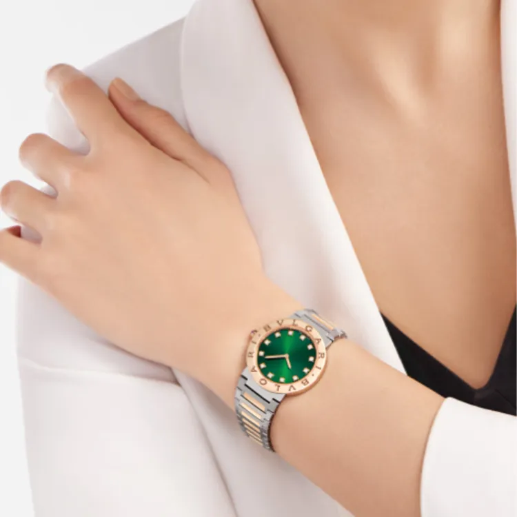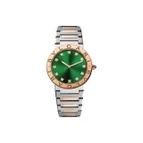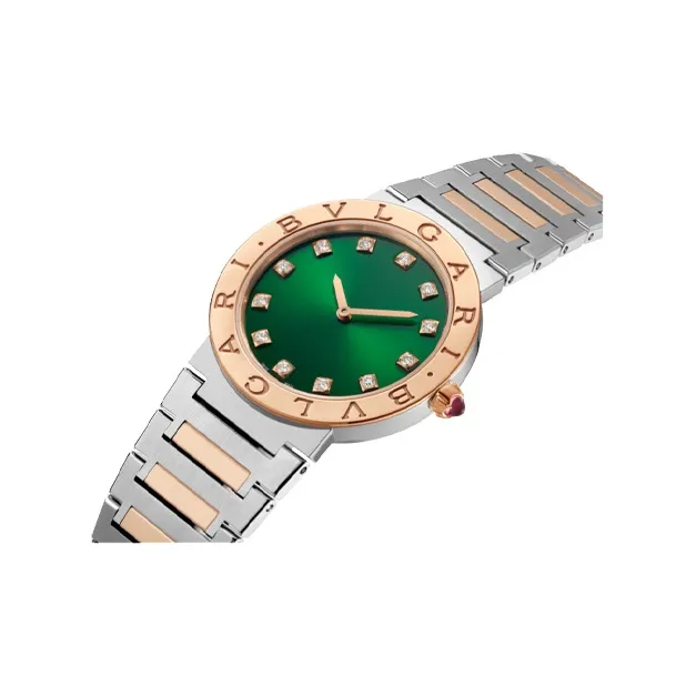 BVLGARI Series Наручные часы Кварцевый механизм Нержавеющая сталь 18K Розовое золото Ремешок 33 мм Зеленый циферблат Женские часы