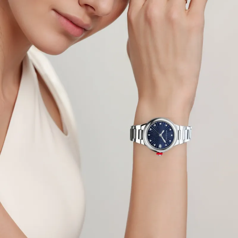 BVLGARI LVCEA Collection Часы Автоматический Механический Механизм Ремешок из Нержавеющей Стали 33 мм Синий Циферблат