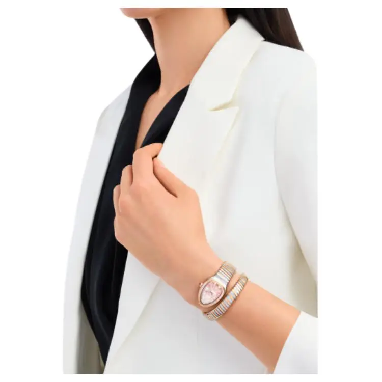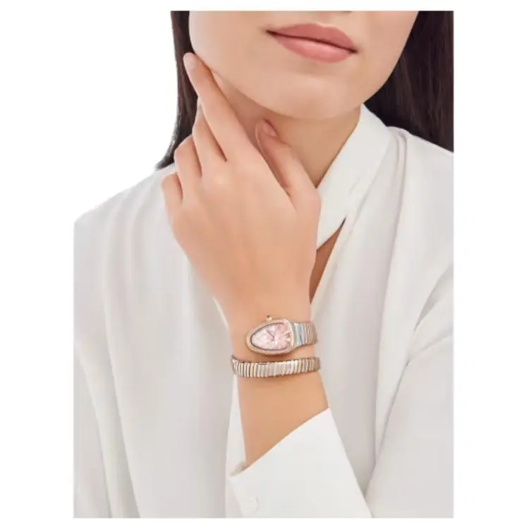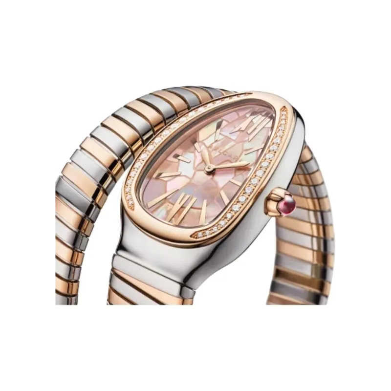 BVLGARI Serpenti Tubogas Часы Кварцевый механизм Нержавеющая сталь 18К Розовое золото Ремешок 35 мм