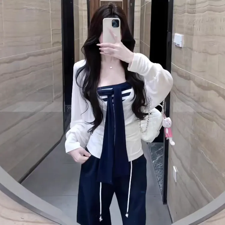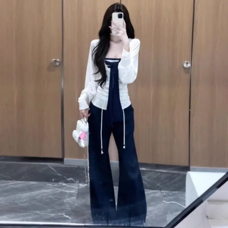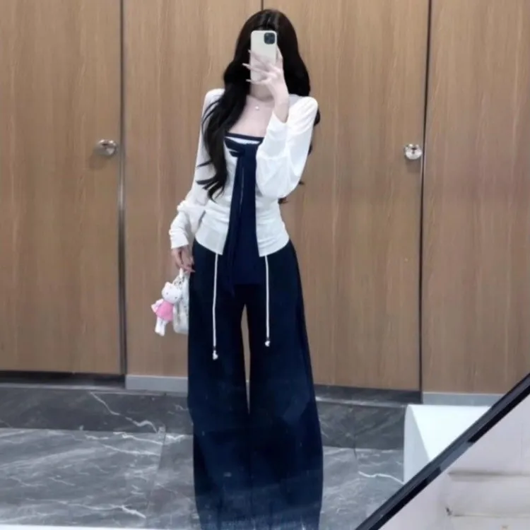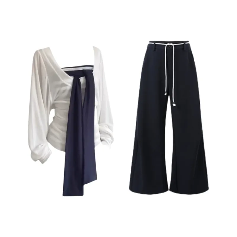 Комплект:Белый топ + топ без бретелек + штаны