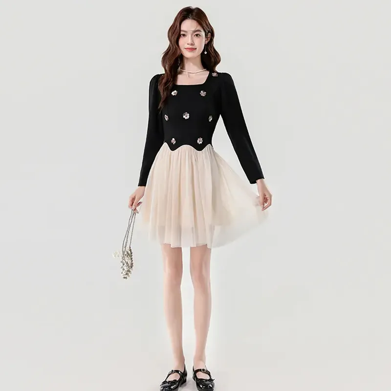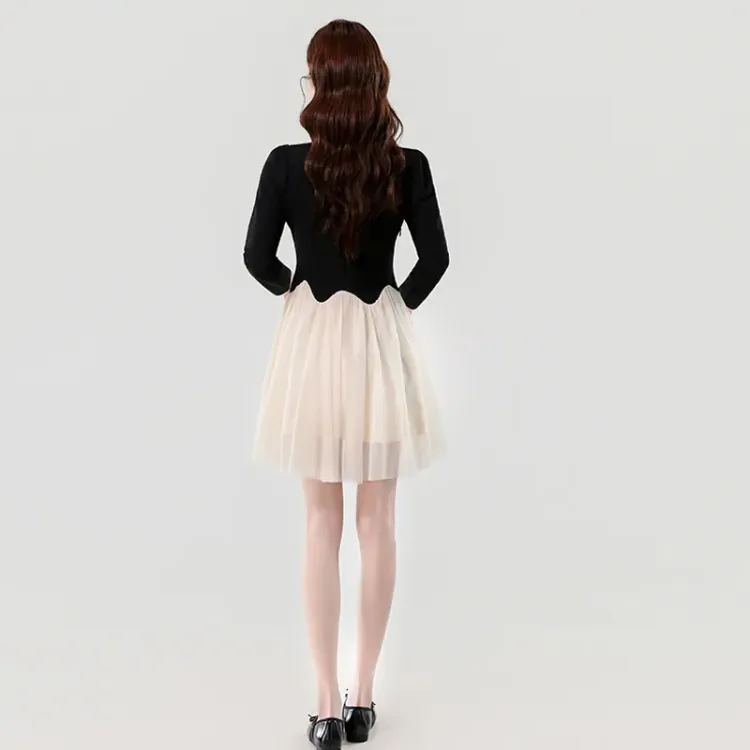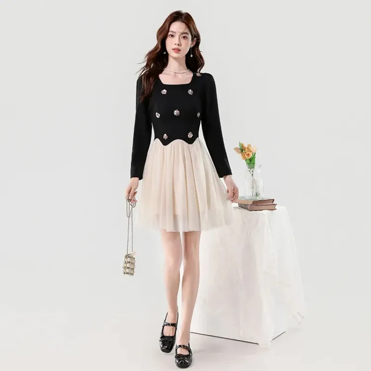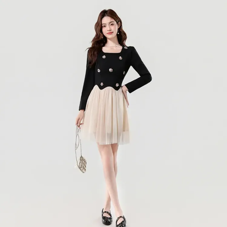 Платье с длинными рукавами, укороченное, в стиле пэчворк
