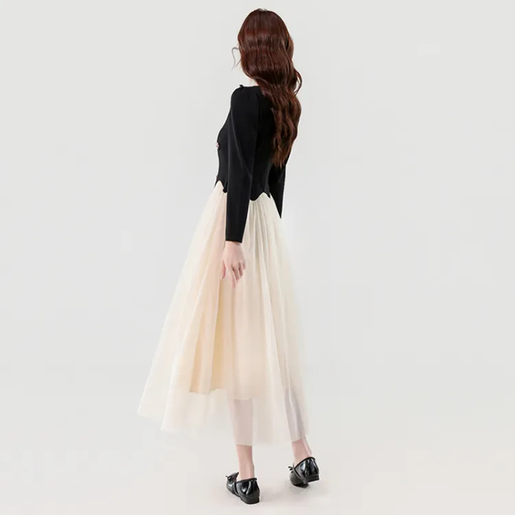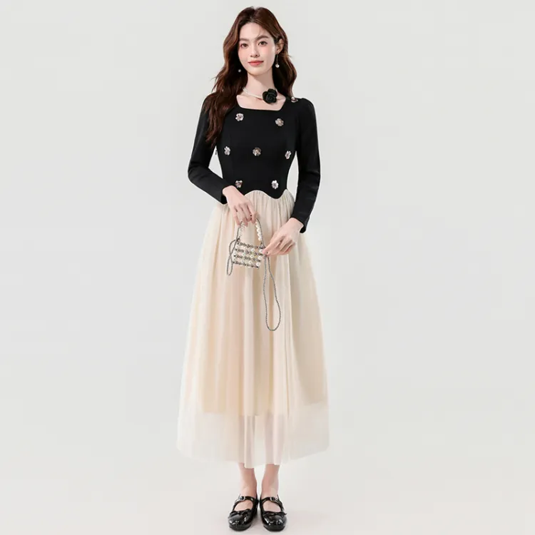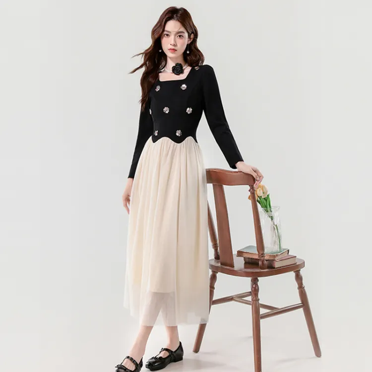 Платье с длинным рукавом и пэчворком