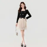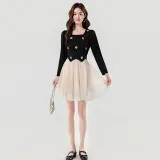 Цвет:Платье с длинными рукавами, укороченное, в стиле пэчворк