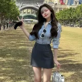 Комплект:Синяя рубашка + юбка