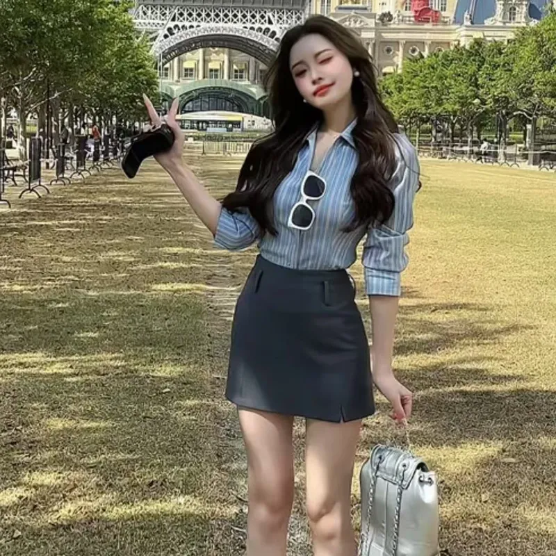 Синяя рубашка + юбка