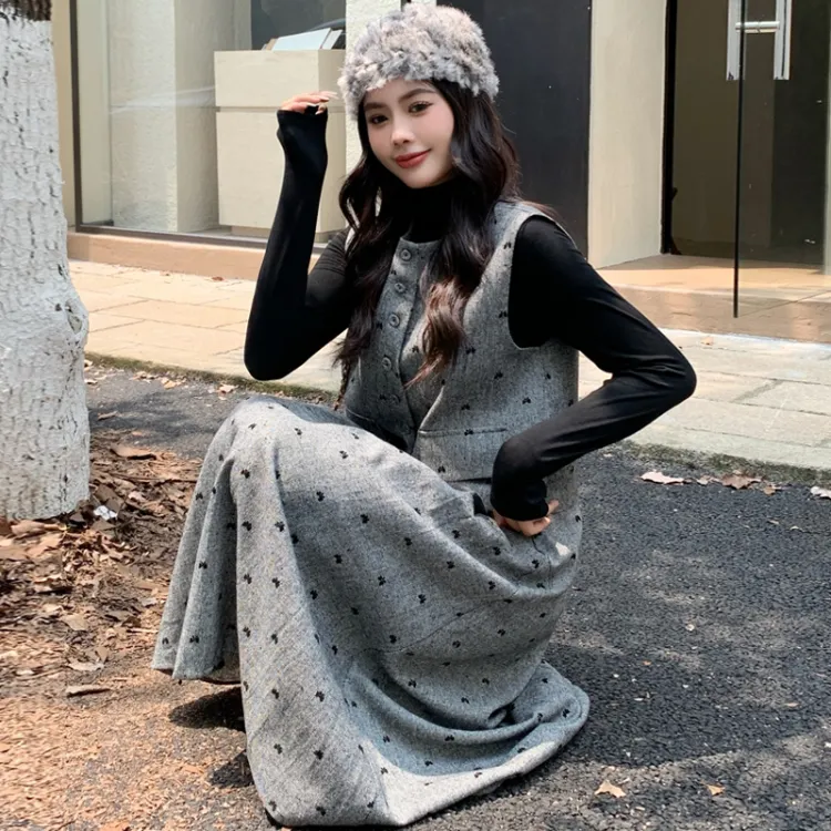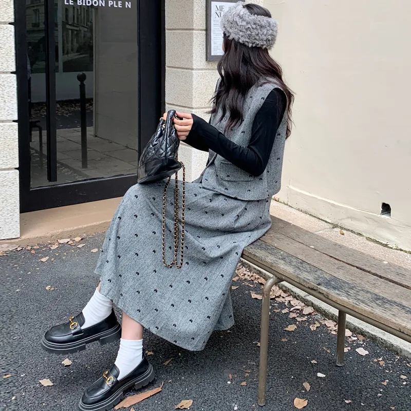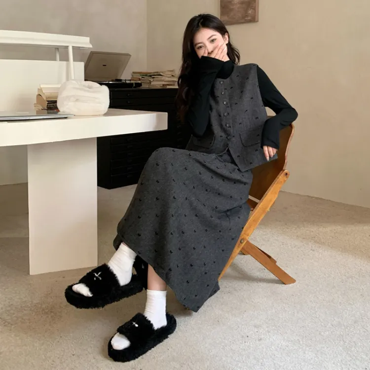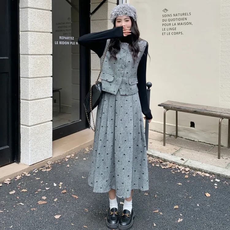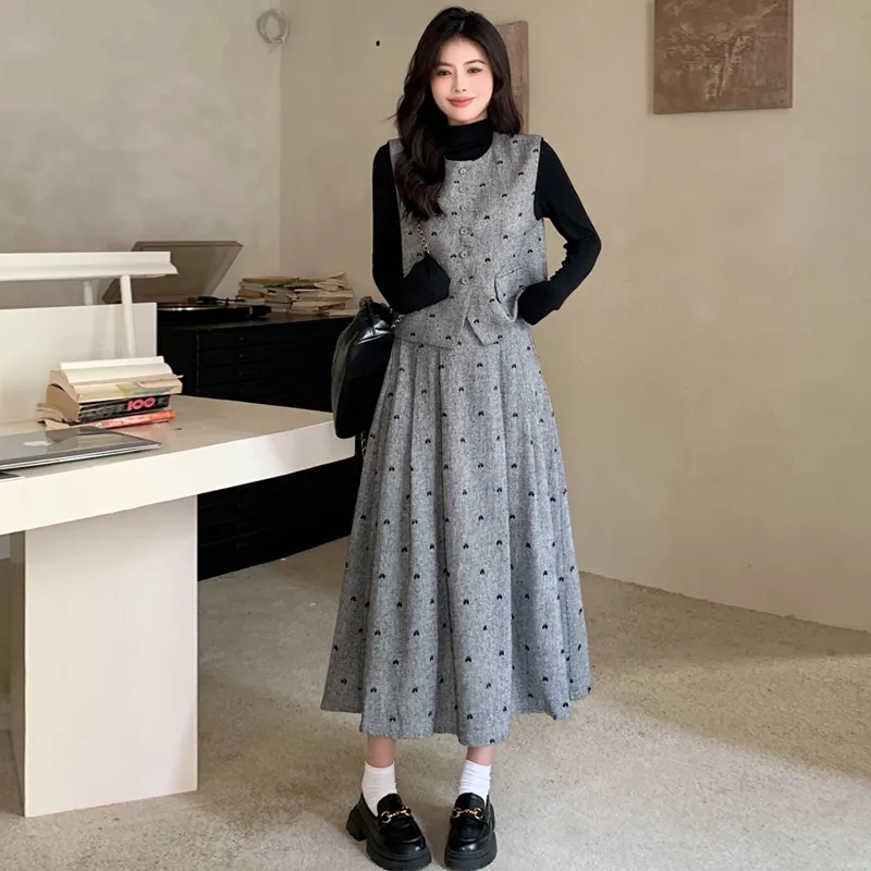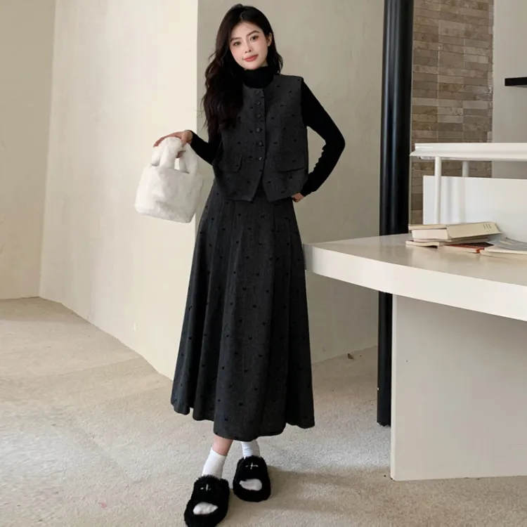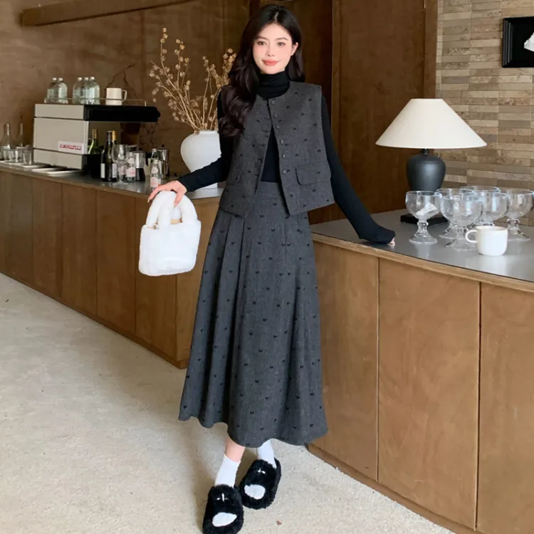 Темно-серый базовый слой + жилет + юбка