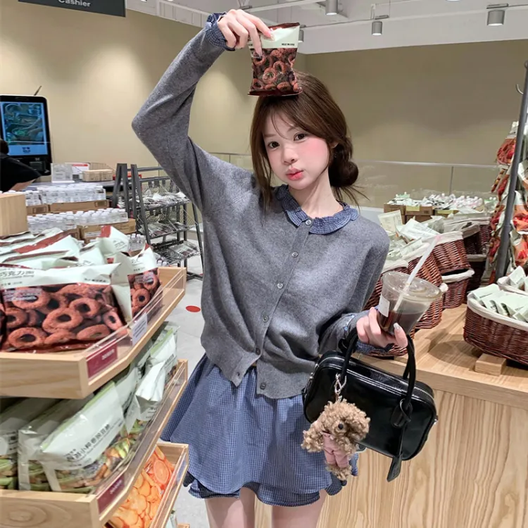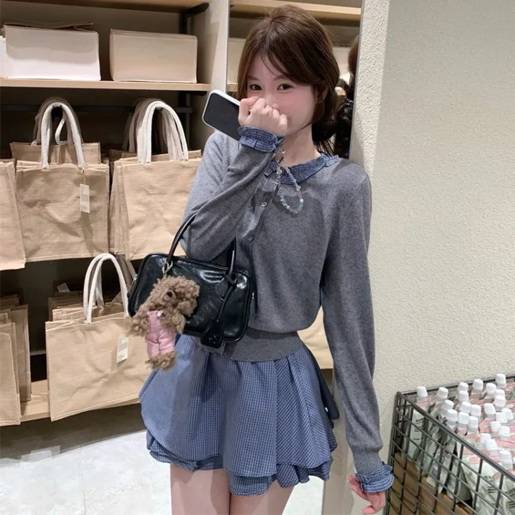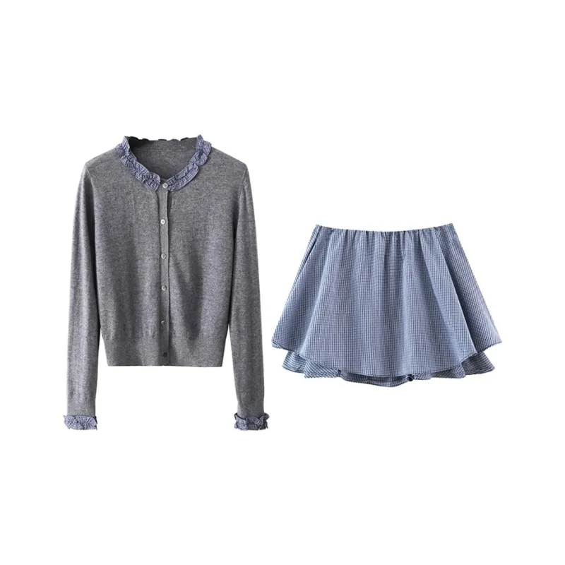 Серый топ и юбка
