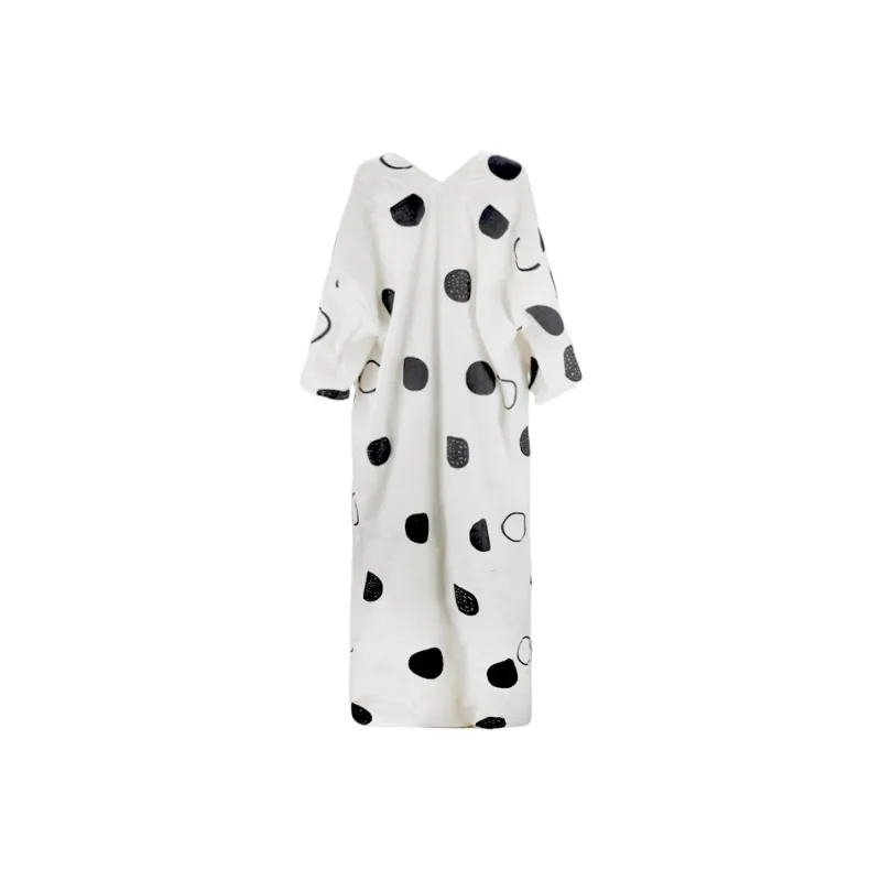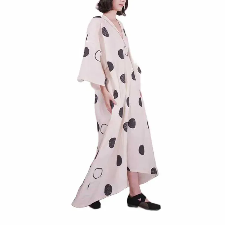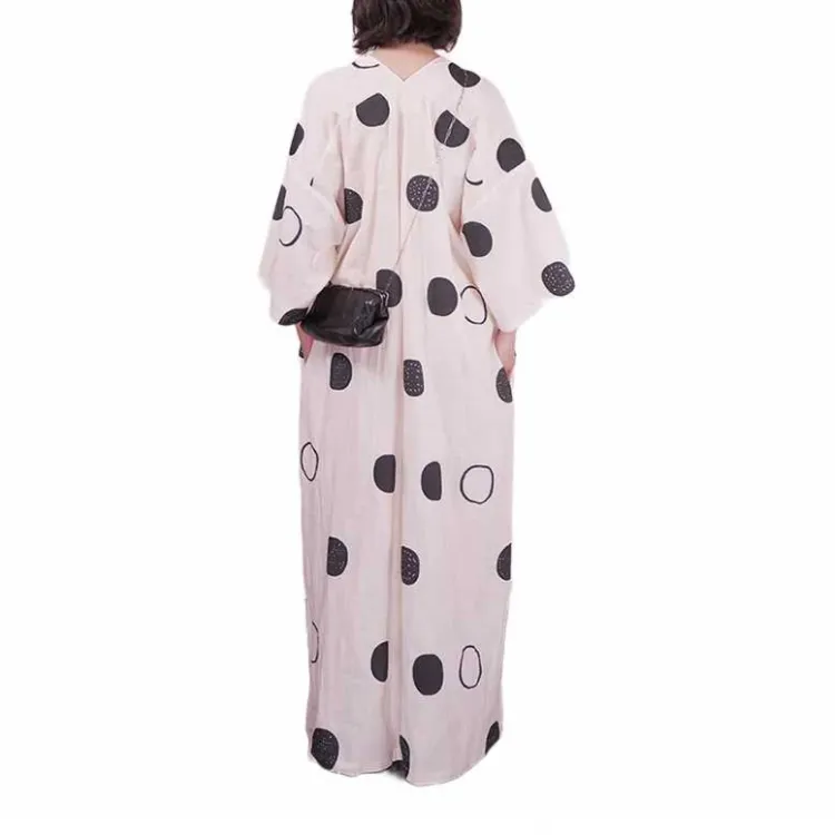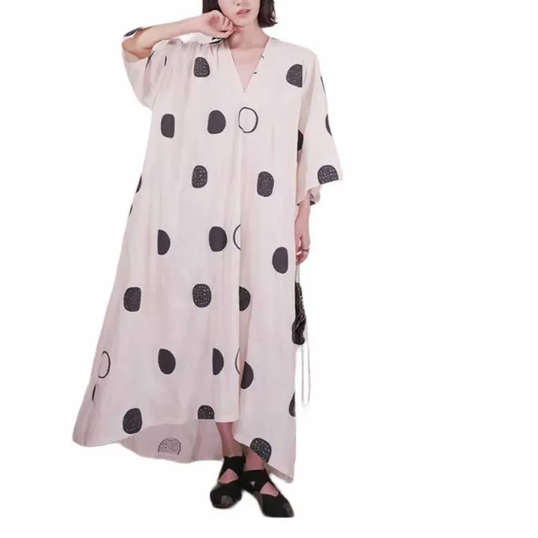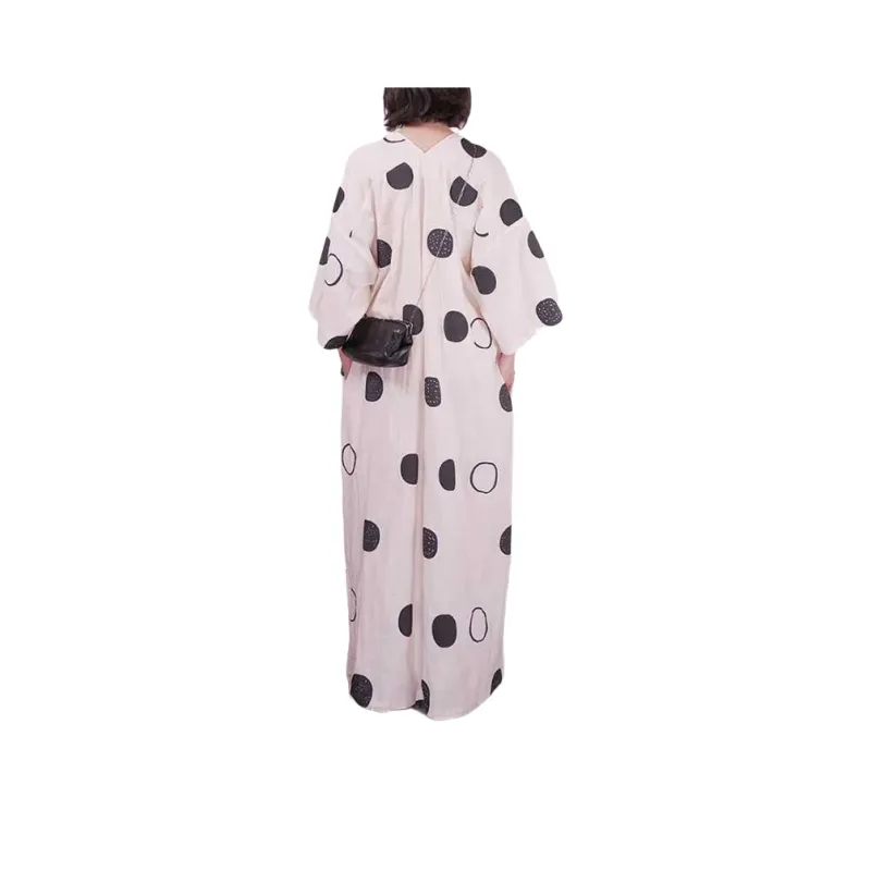 By Cookie H V-образный вырез сиреневый-белый с черным полка-горошек длинный рукав платье женское