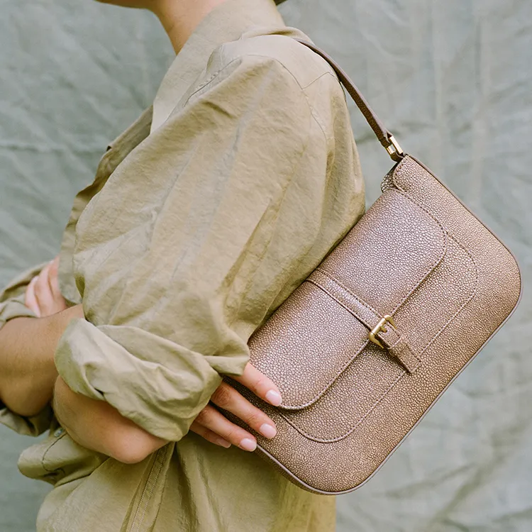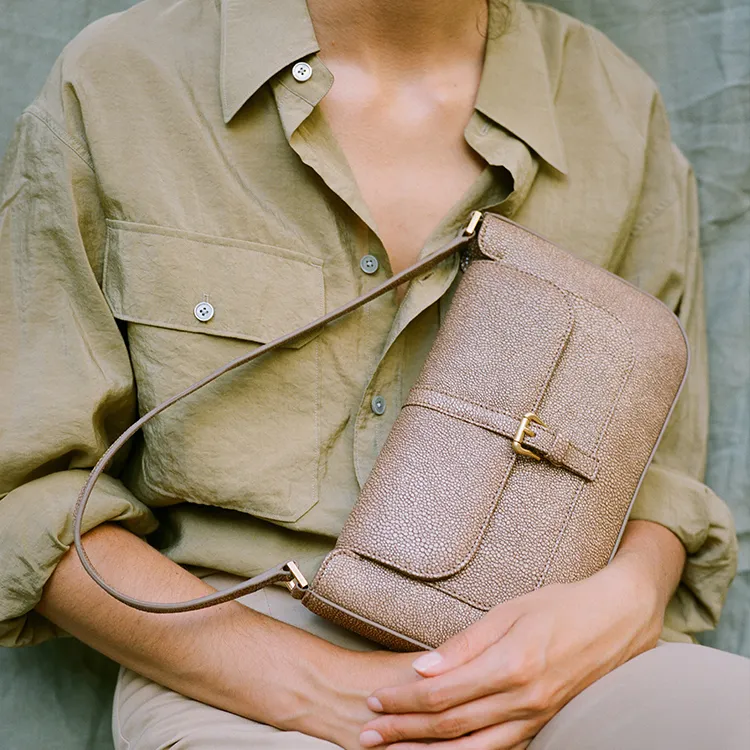 By Far Miranda Коровья кожа Кожа Galuchat Сумка на плечо Сумка Сумка через плечо Средний Женская Коричневый