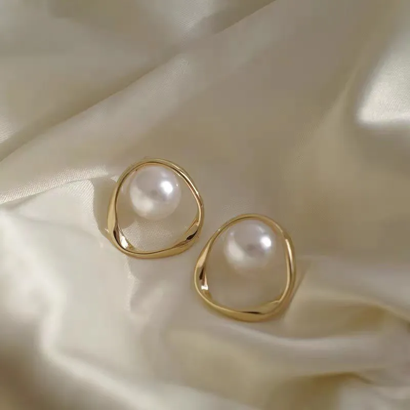 Винтажные жемчужные серьги-кольца + розовая подарочная коробка