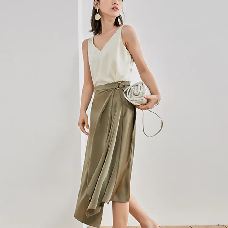 C+IMPRESS Матча Зеленый Женские Повседневные Длинные Юбки