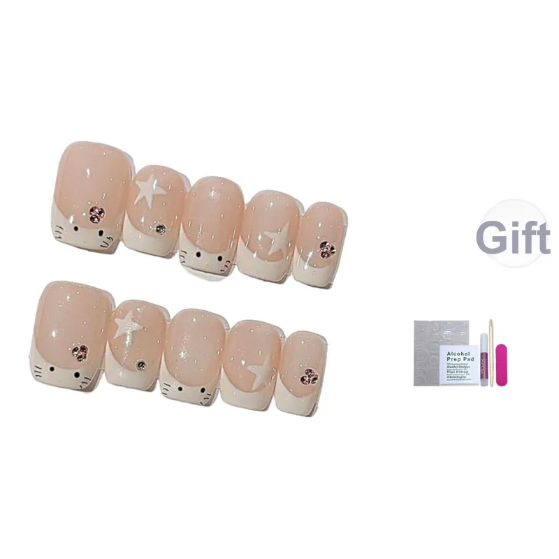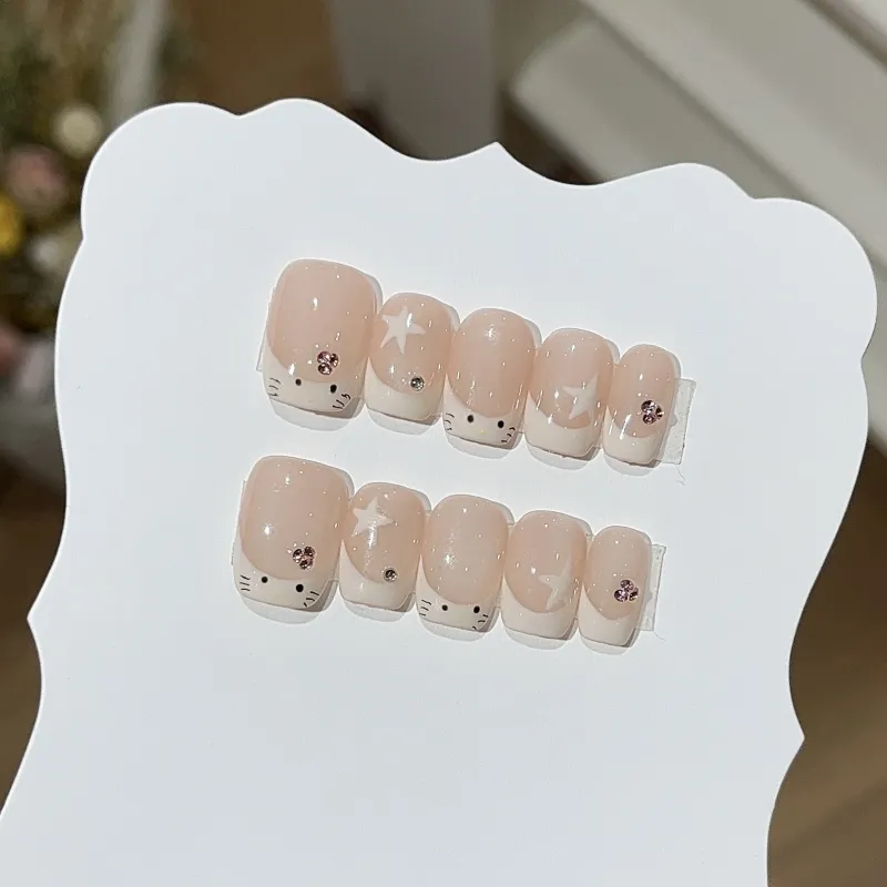 CAIKUHONG FIVE Заостренная Звезда Милый Котенок False Nail Овал Укороченный Розовый Смужка Новый китайский стиль