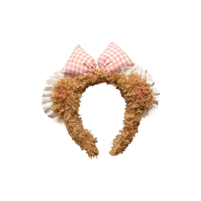 CAIYOUSHU Возлюбленная Румяна Медвежонок Ухо Бант Кружево Лицо Wash Ободок Женские Аксессуар для волос Милый Мех Ободок