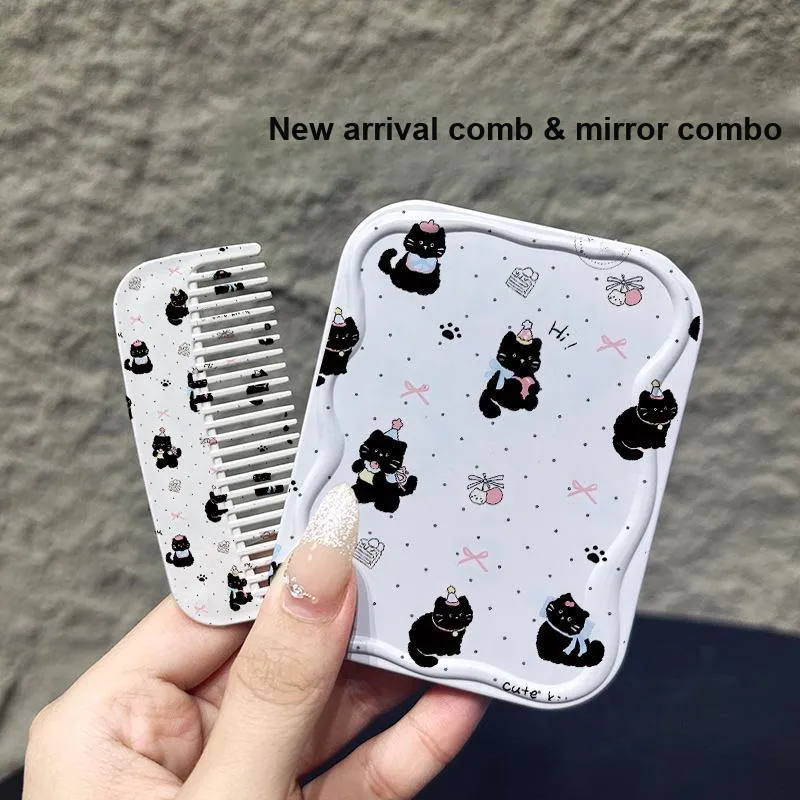 Тип:Полка Дот Черный Кот Сложное Зеркальце Гребень (Брелок Не Включен)