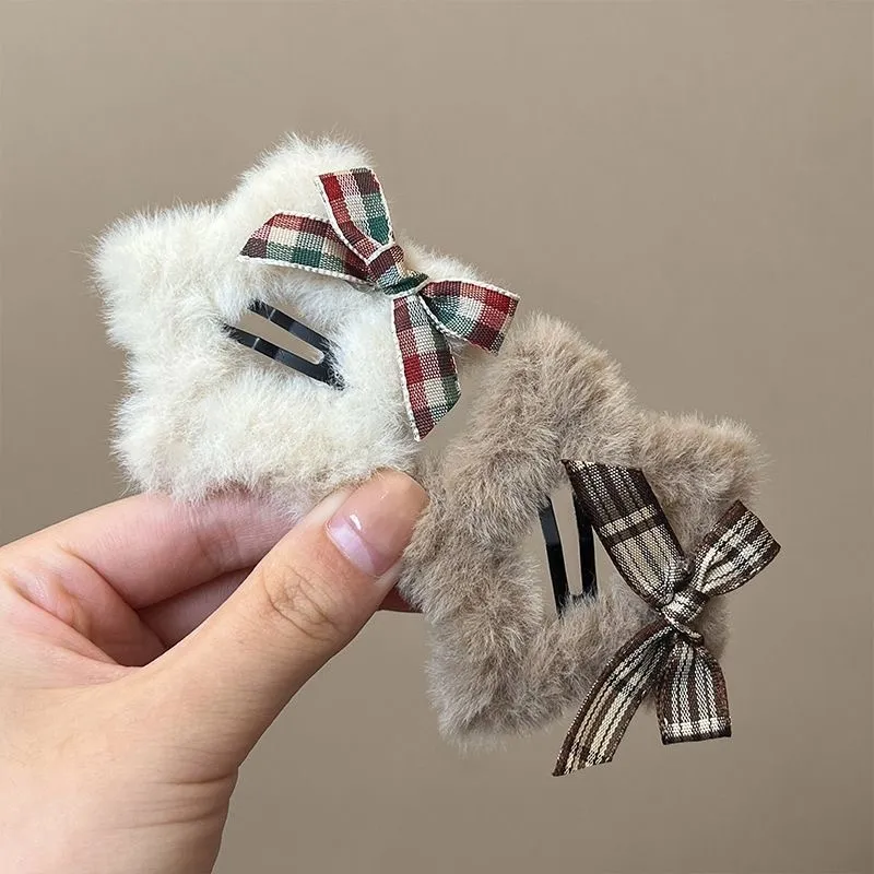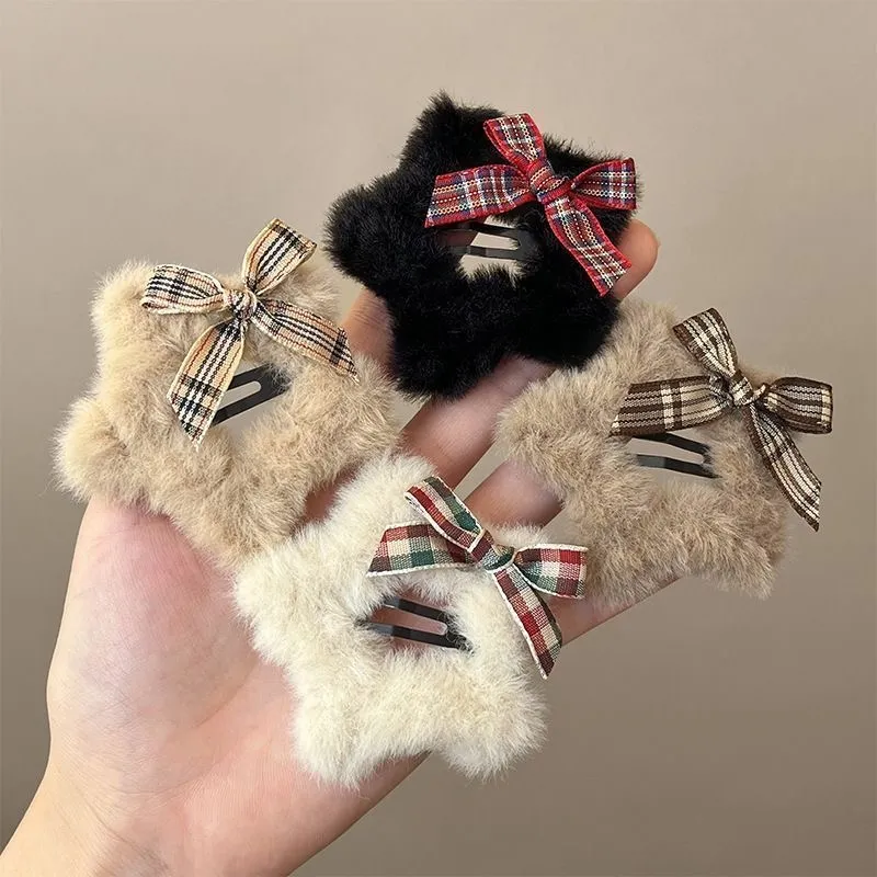 CAIYOUSHU Милый стиль бант Плюшевый Звезды Заколки для волос Повседневный Универсальный Маленький And Милый Эссенциальный Макияж