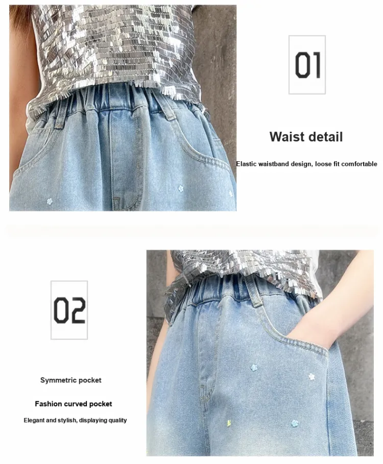 Calfitte Маленький цветок Деним Модный Модный Дышащий Универсальный Подростки