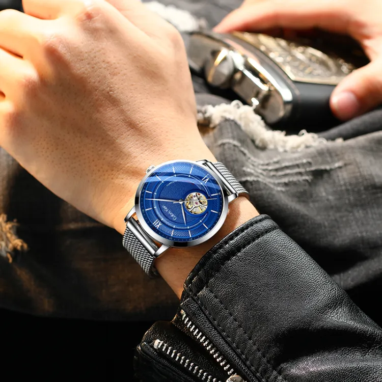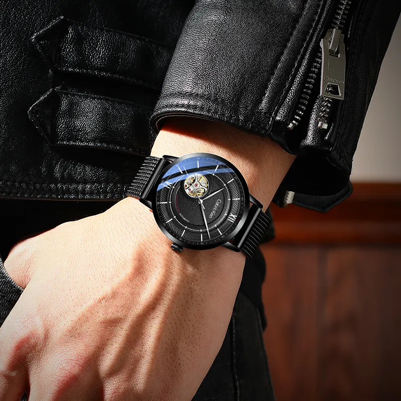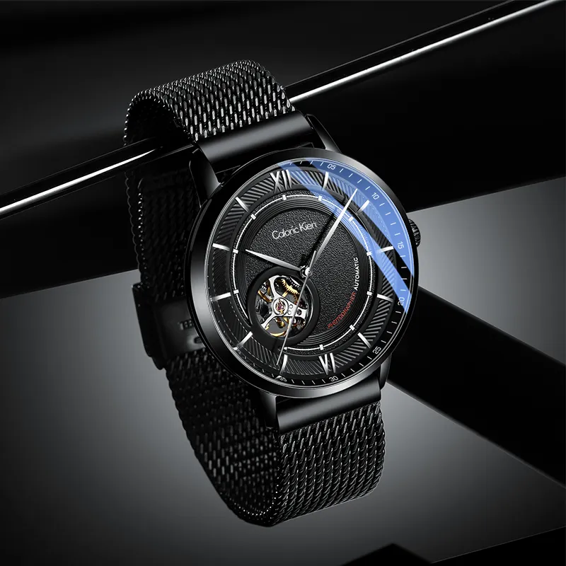 CALORIC KIEN Автоматический Механический Механизм Нержавеющая Сталь Ремешок Часы Мужские Черный Циферблат