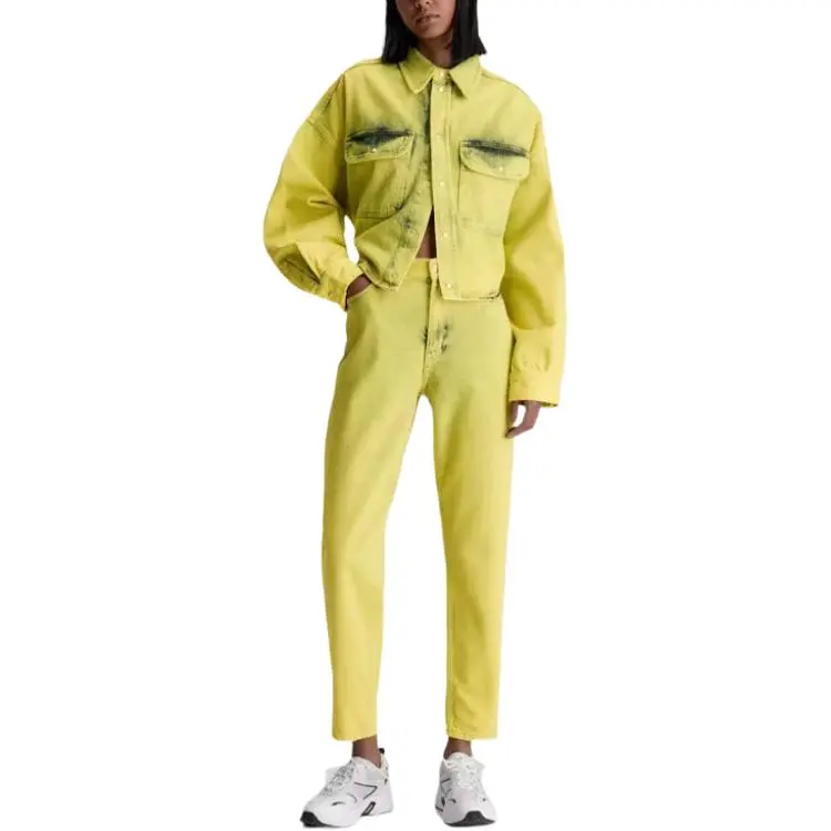 CALVIN KLEIN OVERSIZED Cropped Denim Jacket Women's Yellow
