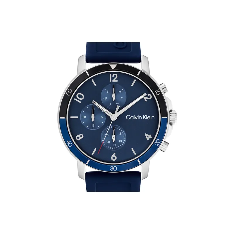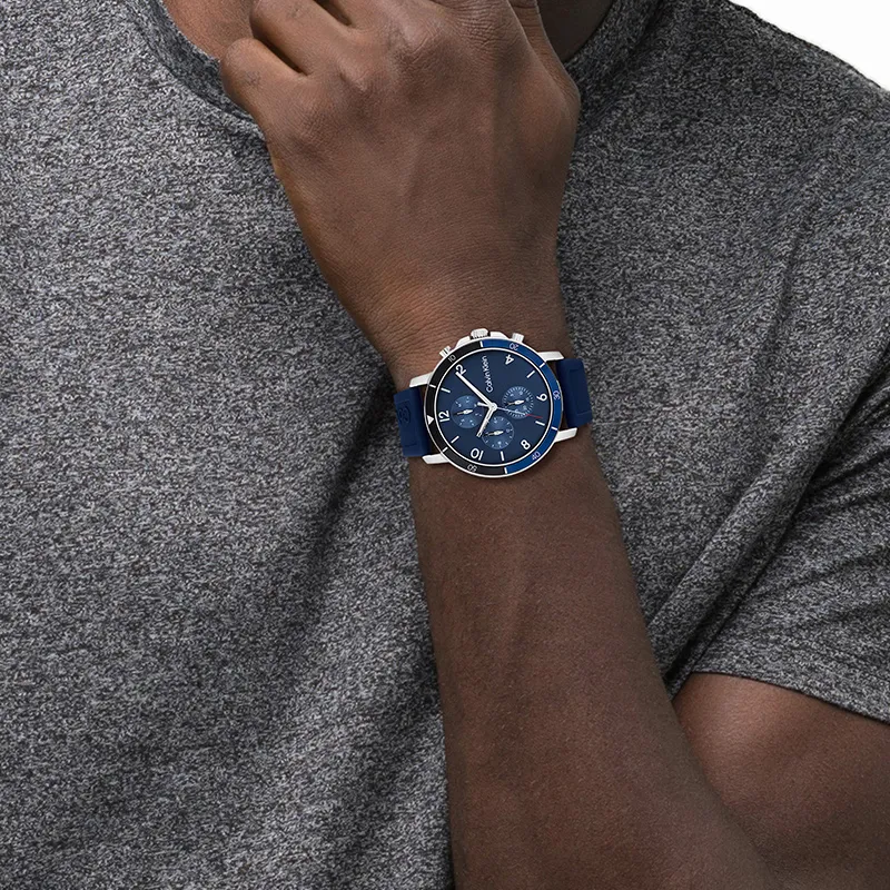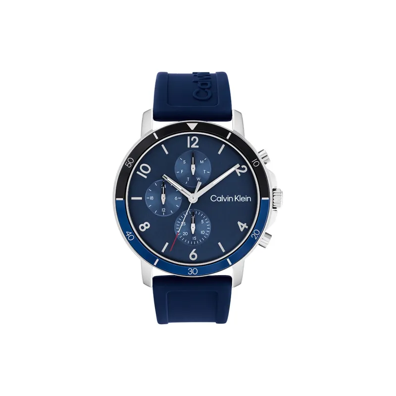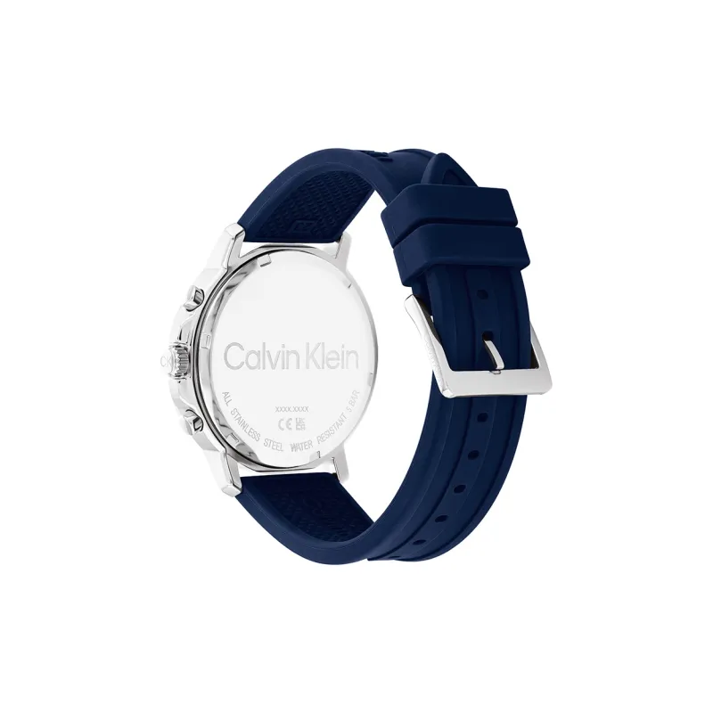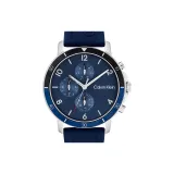 Calvin Klein Кварцевый механизм Мужские часы Часы 46мм*46мм*10,7мм Синий циферблат Корпус из нержавеющей стали Силиконовый ремешок
