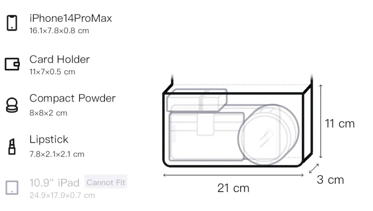 Д21*Ш3*В11см