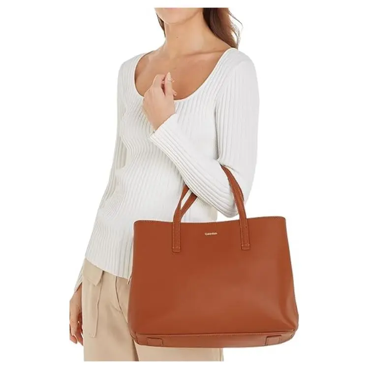 CALVIN KLEIN Переработанный полиэстер Тоут Сумка Сумка для покупок Сумка через плечо Сумка Женская Коричневая