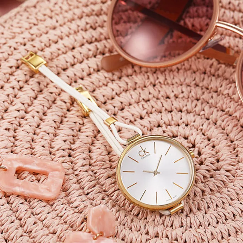 Calvin Klein Selection Collection Наручные часы Кварцевый механизм Кожаный ремешок 38 мм Серебристый циферблат Женские часы K3V235L6