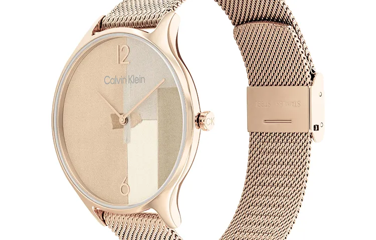 CALVIN KLEIN Вечные Наручные Часы Кварцевый Механизм Нержавеющая Сталь Ремешок 38 мм Розовое Золото Циферблат Часов