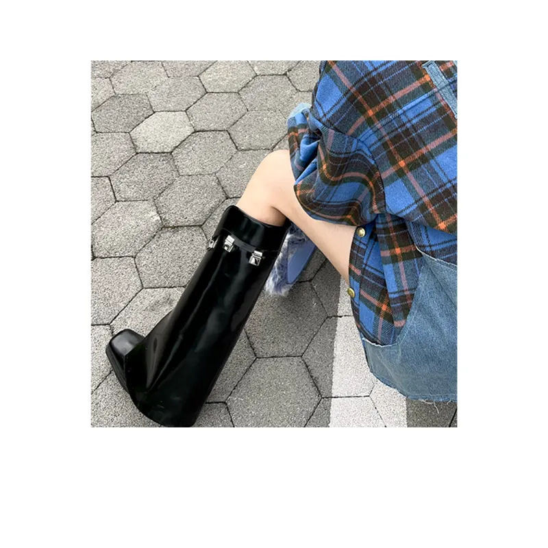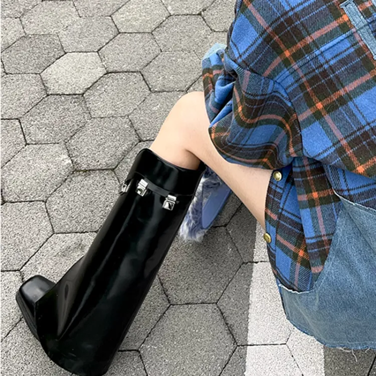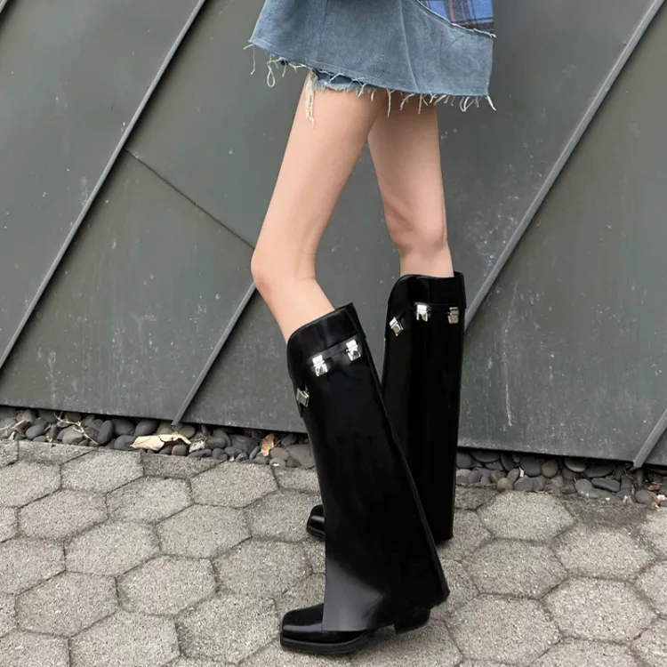 CALVINLUO Женские высокие сапоги на каблуке черные