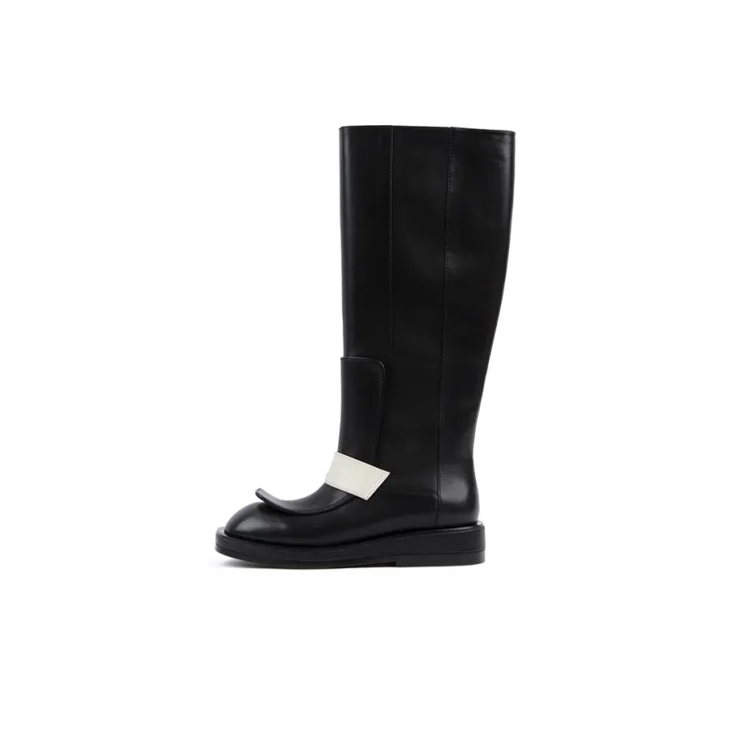 CALVINLUO Женские высокие сапоги на каблуке черные