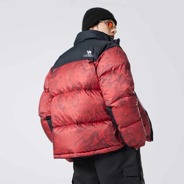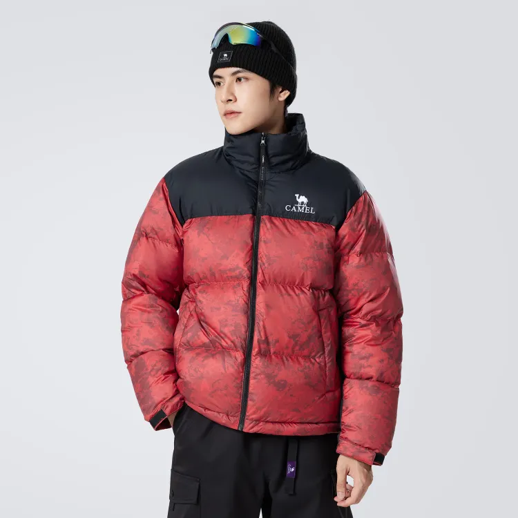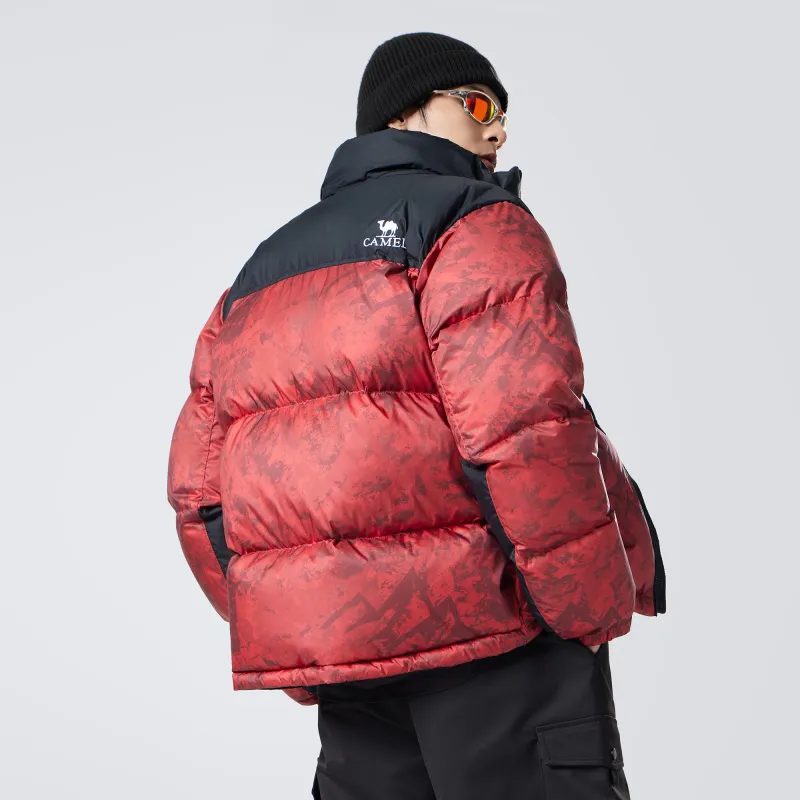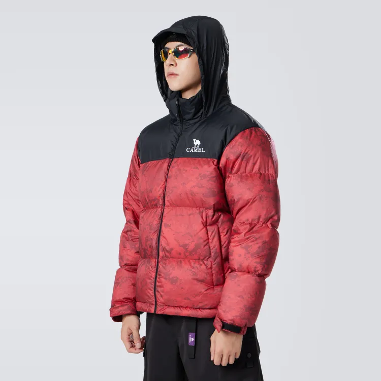 CAMEL Цветовой блок Камуфляж Принт Пуховая куртка с Ветрозащитным Флисом и Водоотталкивающим Капюшоном Унисекс