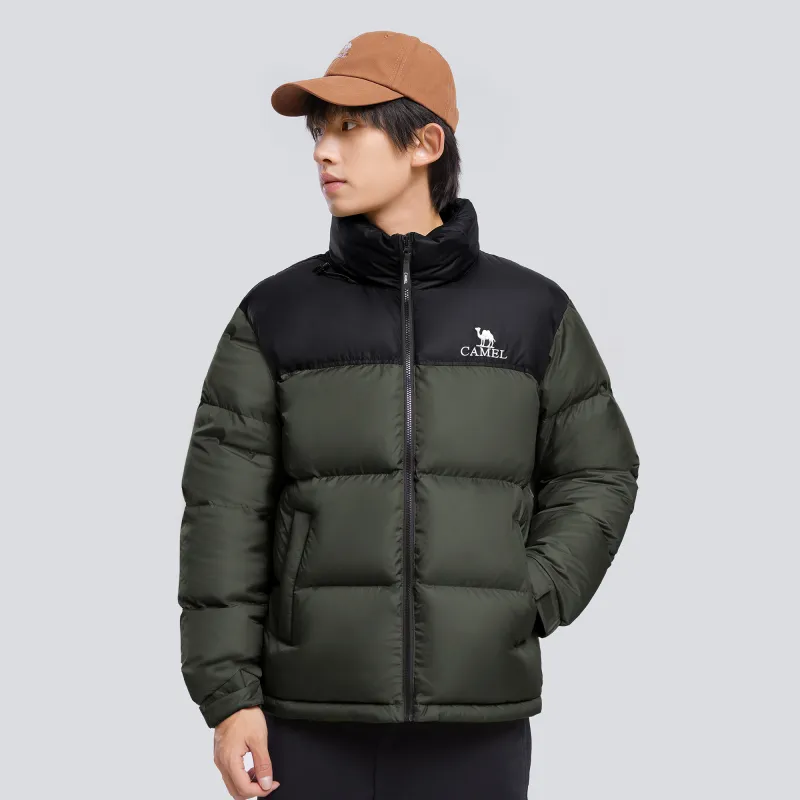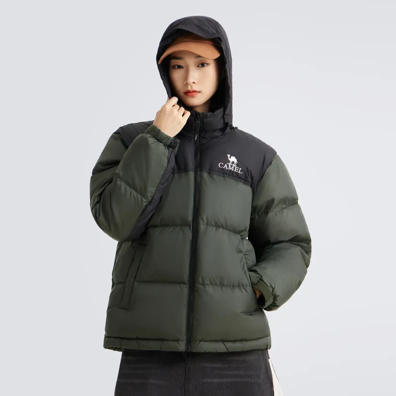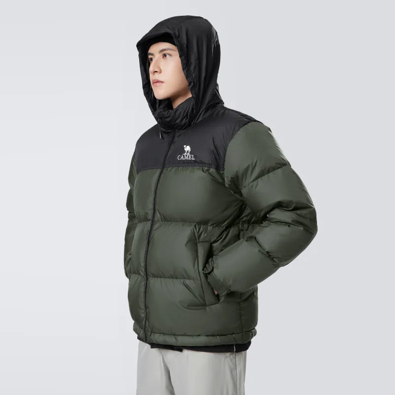 CAMEL Цветовой блок Пэчворк Воротник-стойка Windproof Hooded Водонепроницаемый Утолщенный Теплоизоляционный Пуховик Унисекс