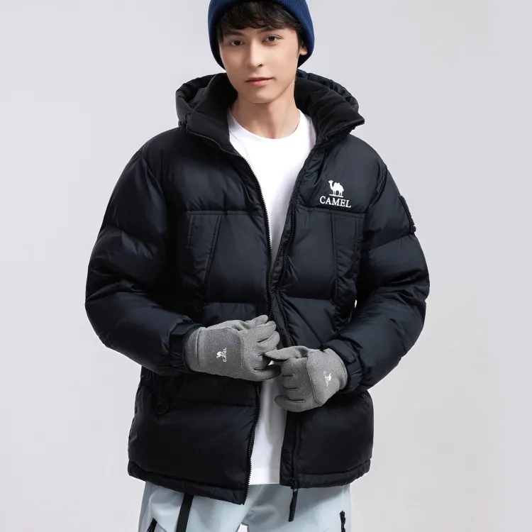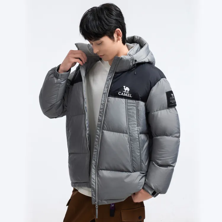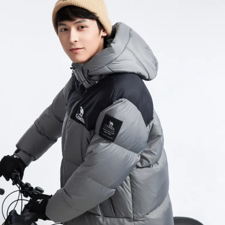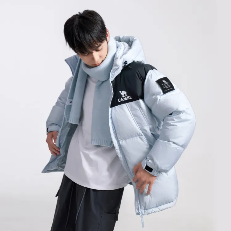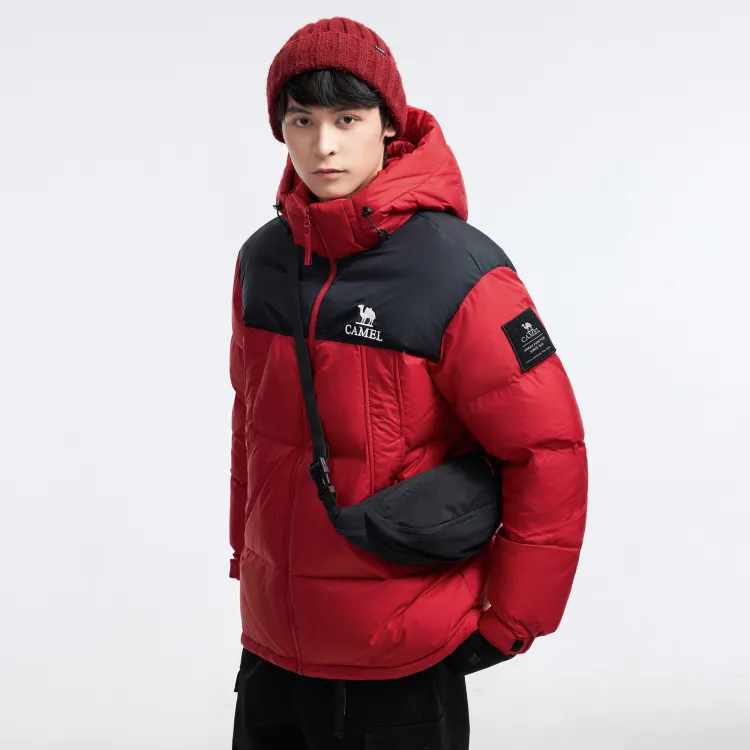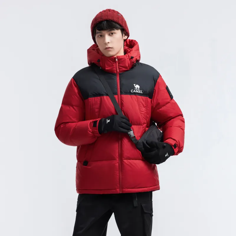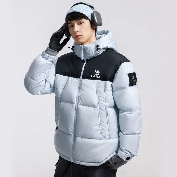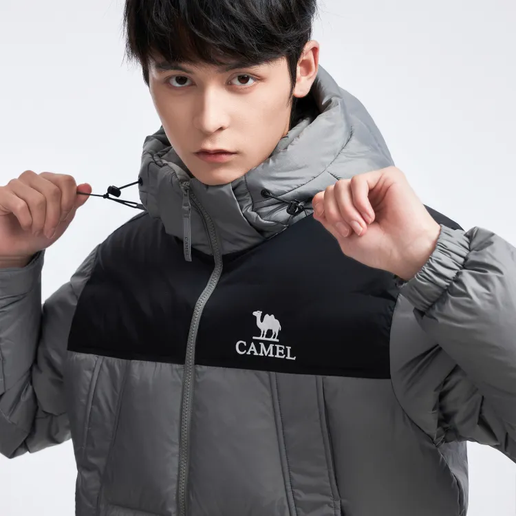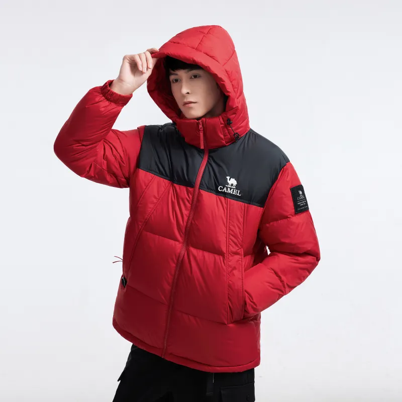 CAMEL Многоцветный Windproof Hooded Свободный крой Теплый с наполнителем Пуховая куртка Унисекс
