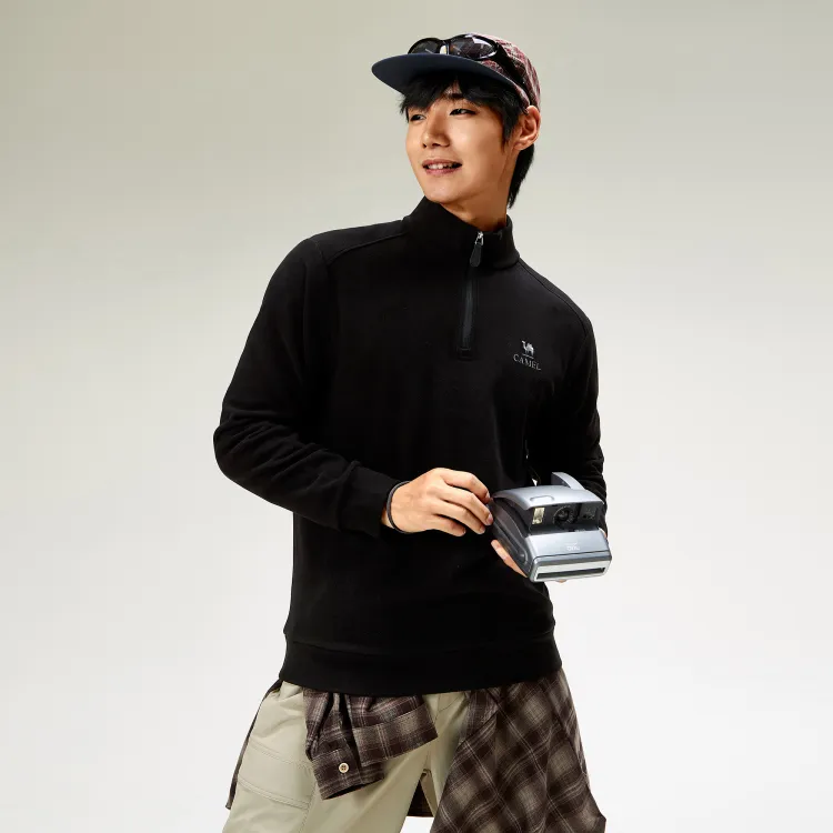 CAMEL Молния Stand Up Ожерелье-чокер Двойной Sided Дралон Базовый слой Топ Длинный рукав Дышащий Эластичный Свитшот Мужской