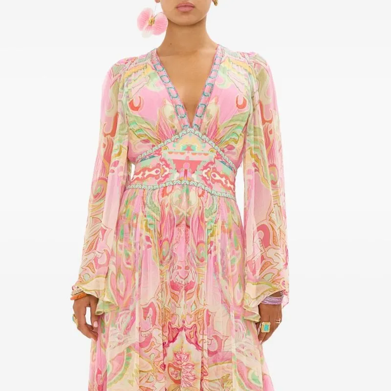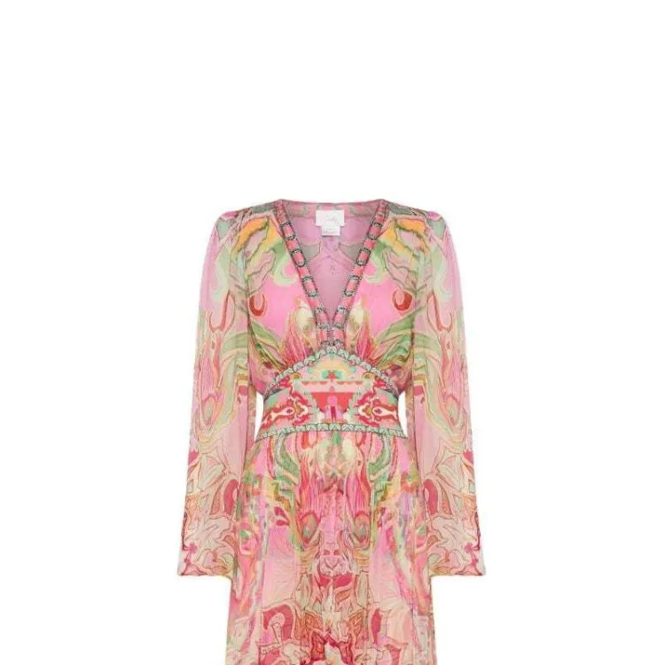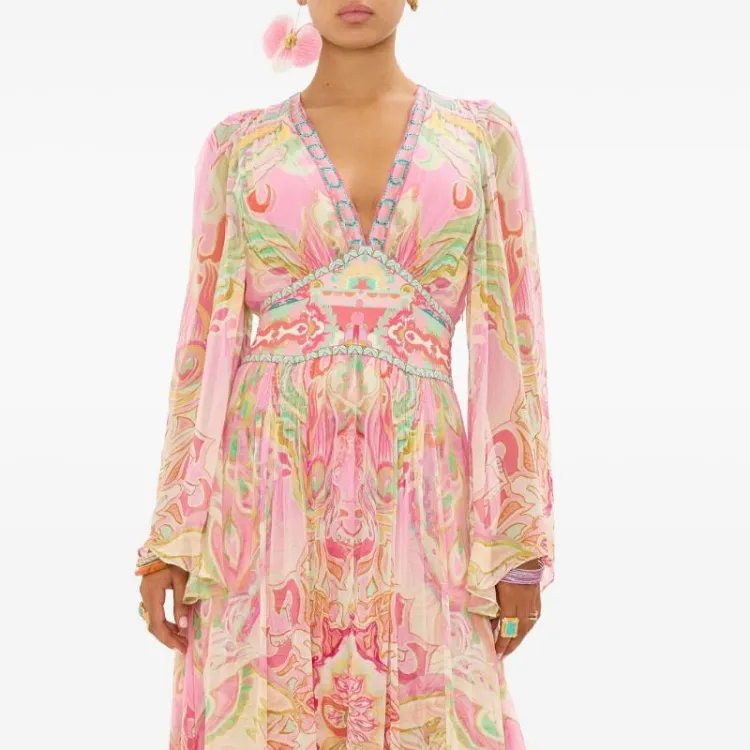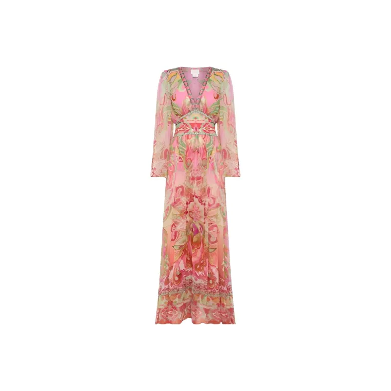 CAMILLA SS24 Длинное платье с длинными рукавами женское розовое