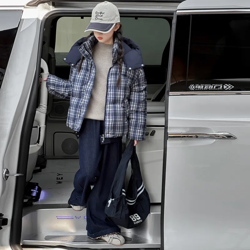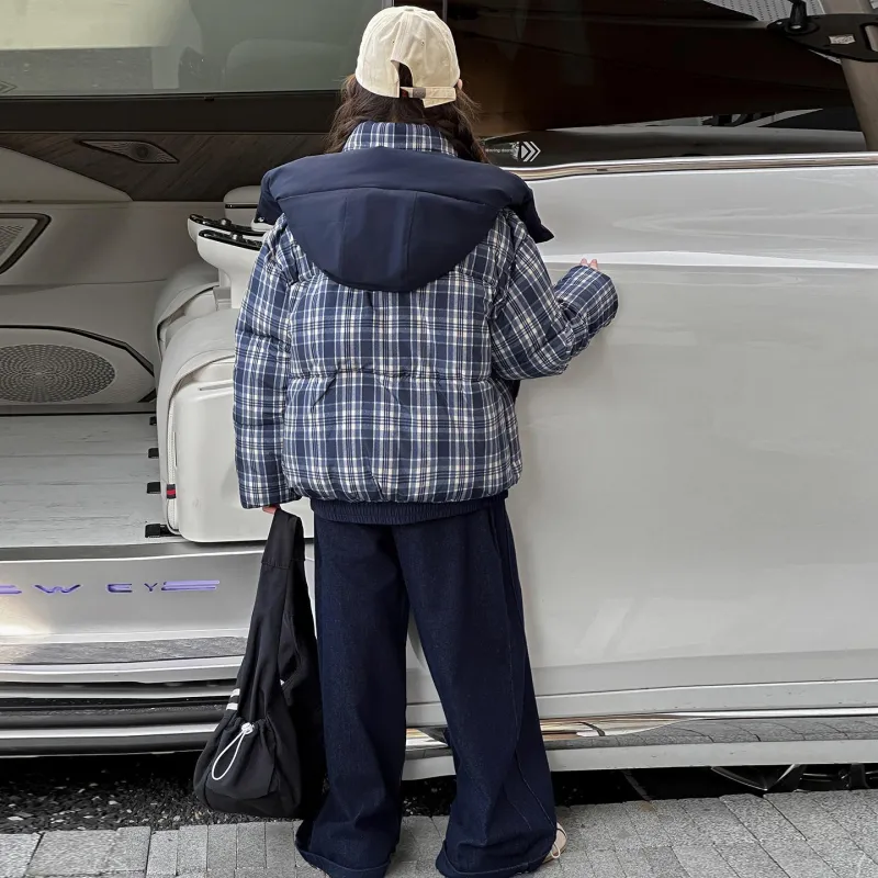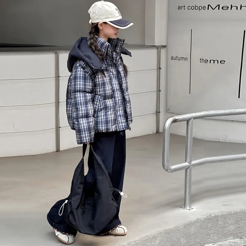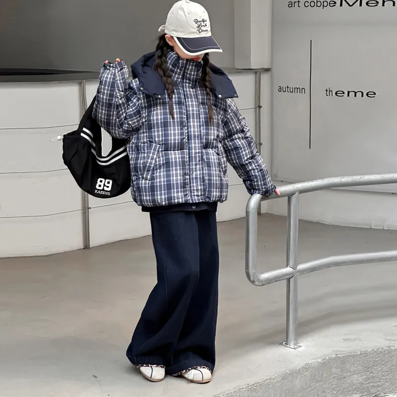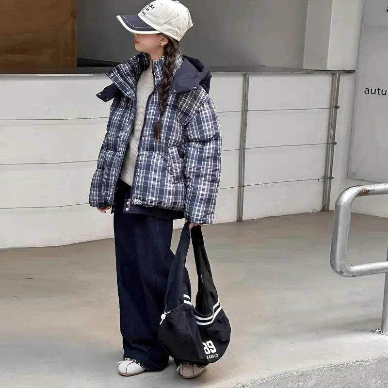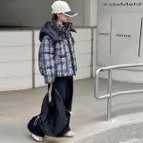 CAMKIDS Темно-синий синий клетка школьный возраст утеплённые куртки