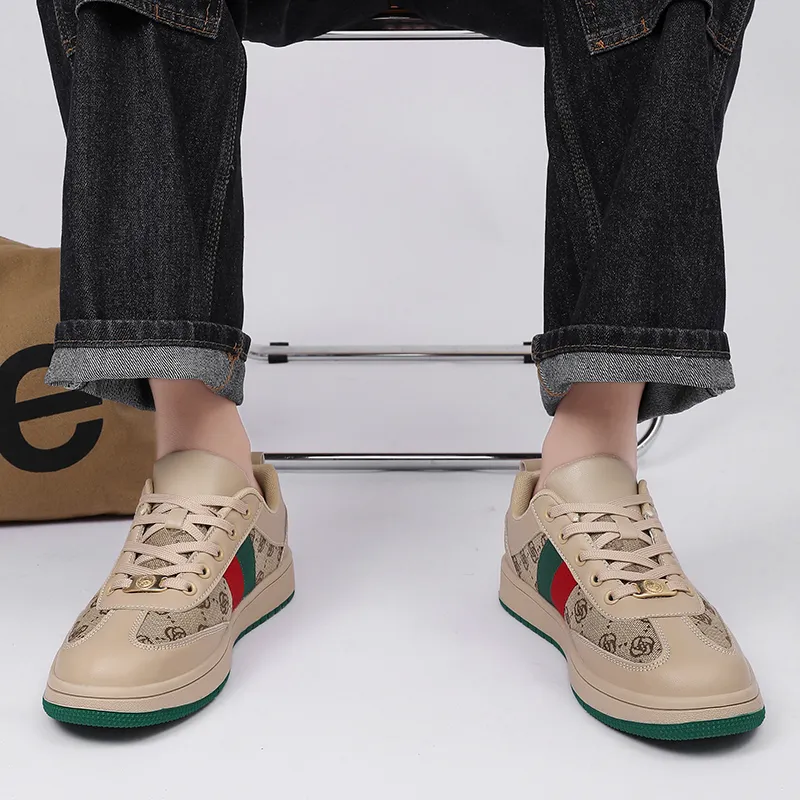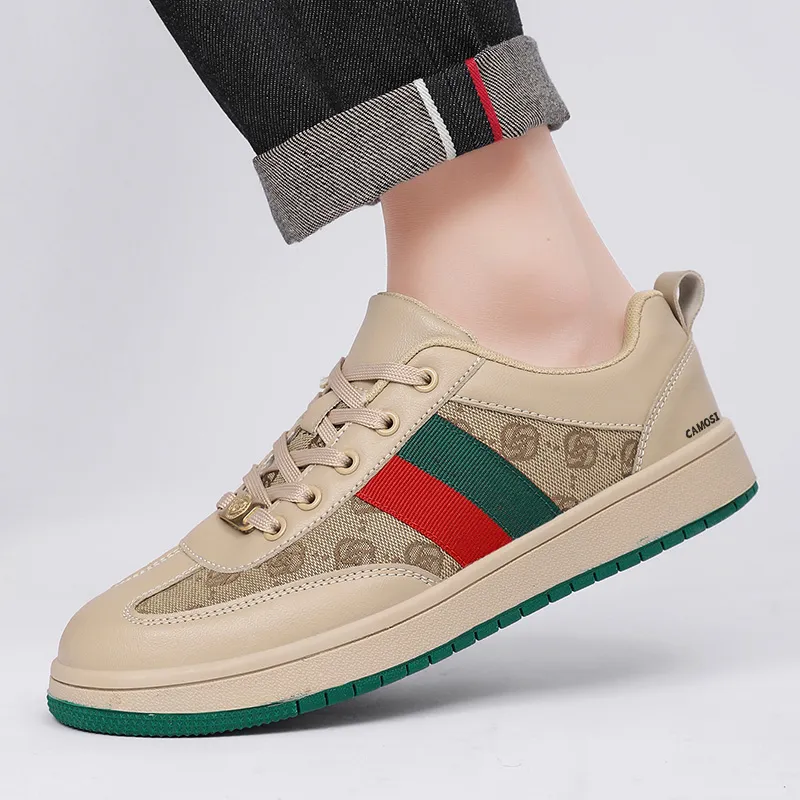 CAMOSI Легкие и Дышащие Низкие Кроссовки для Скейтбординга Унисекс Бежево-Зеленые