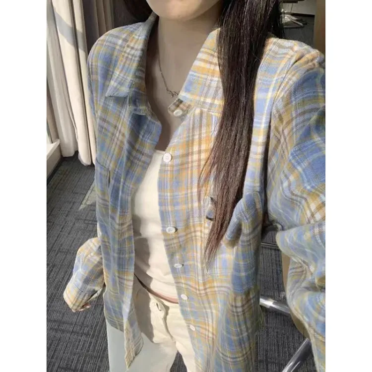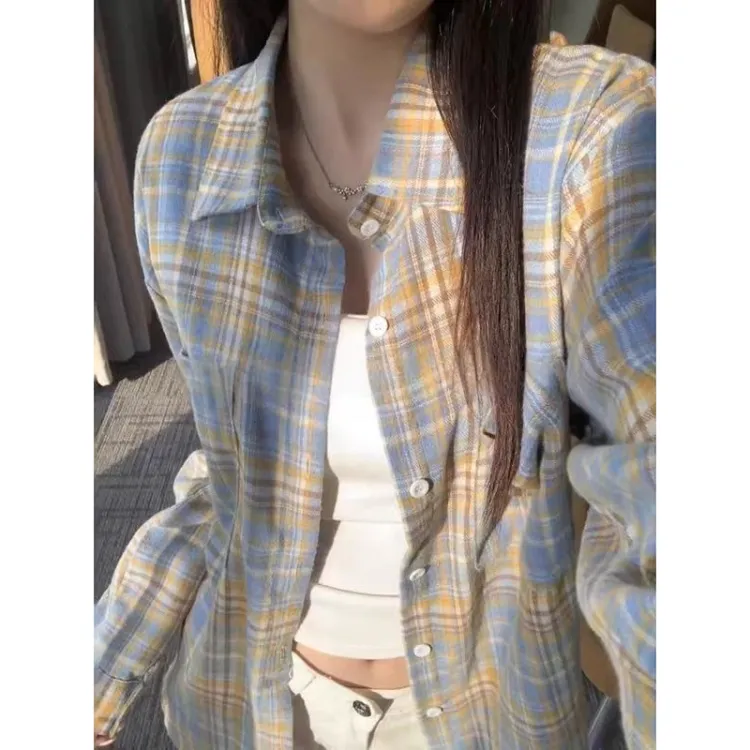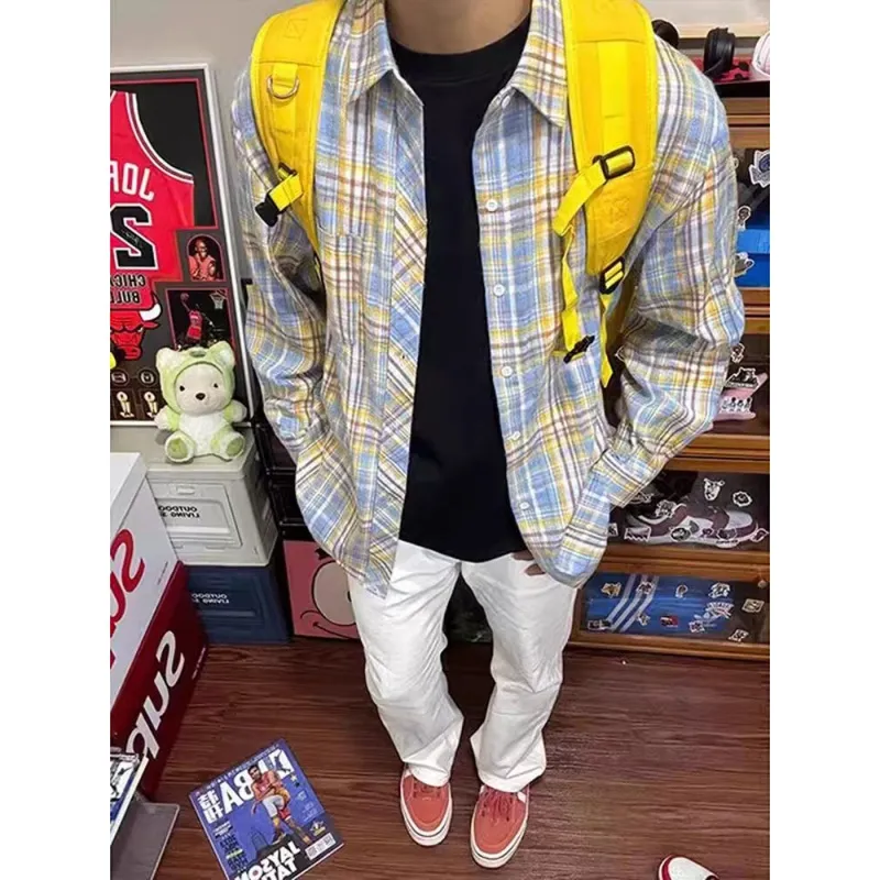CARE NOTE Желтая клетка Унисекс Рубашки