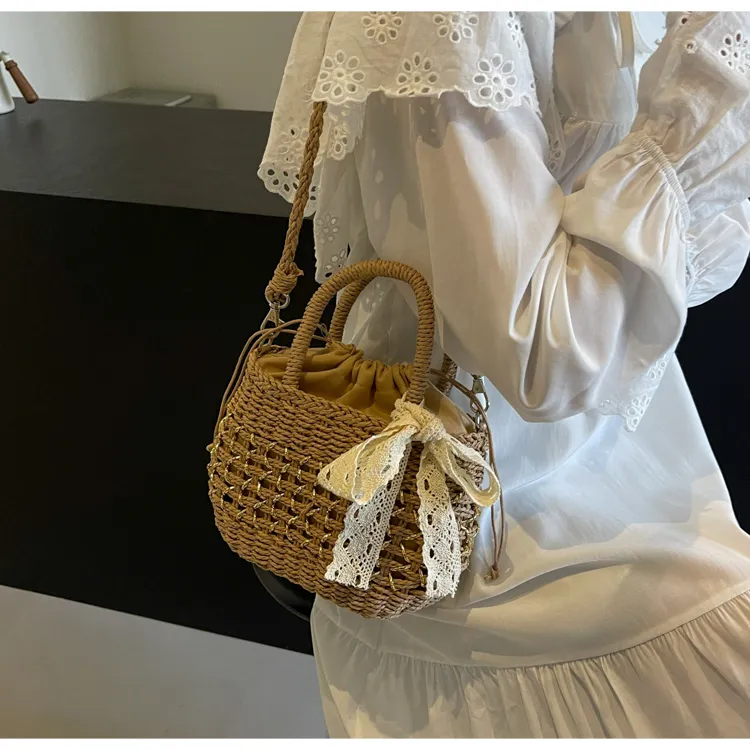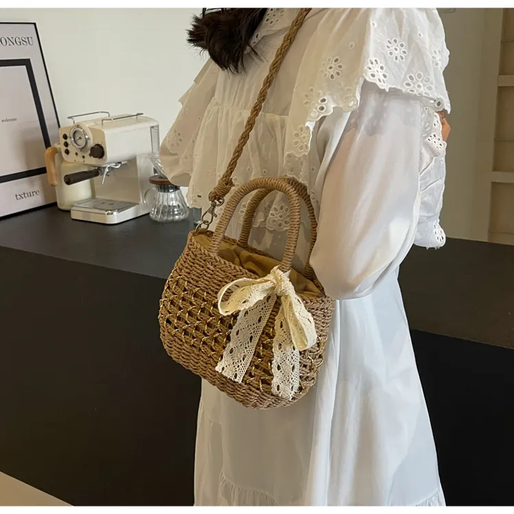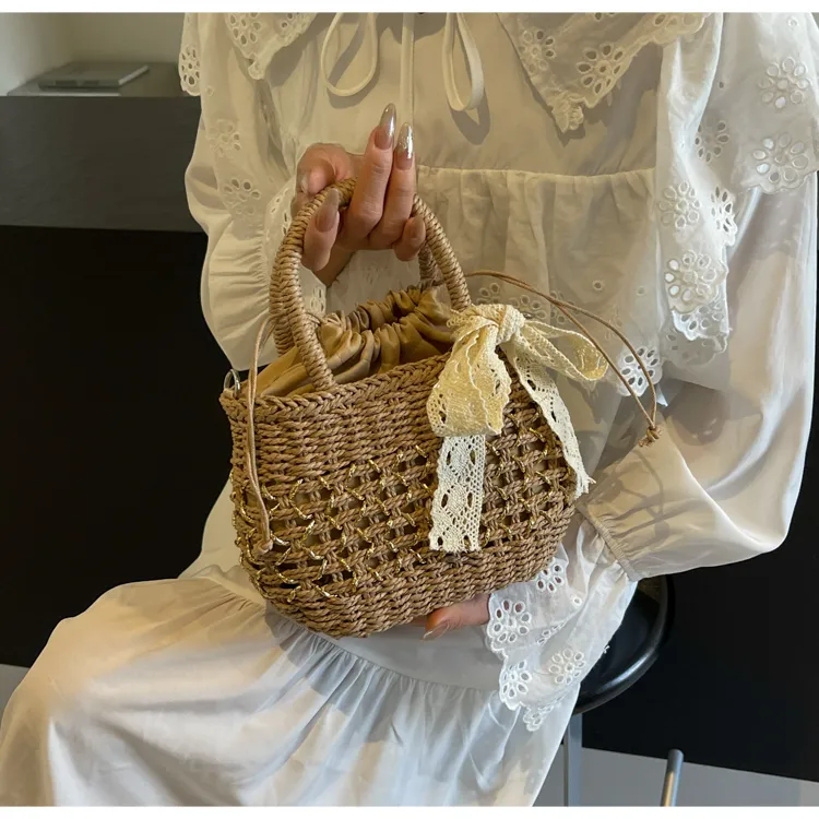 CAREELL Плетеная соломенная сумка стандартная женская бежевая хаки