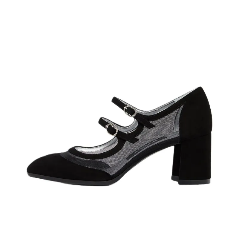 Carel Alicenight Грубый каблук Туфли Мэри Джейн 6 см Женские Черный