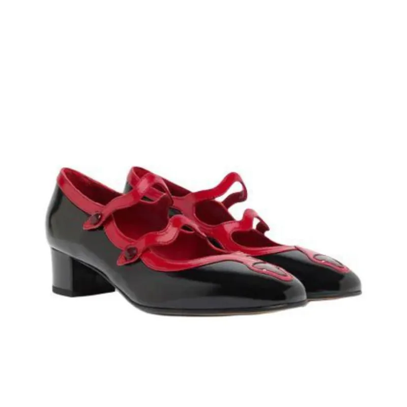 Carel Kina Квадратный каблук Туфли Мэри Джейн 4CM Женские Черный