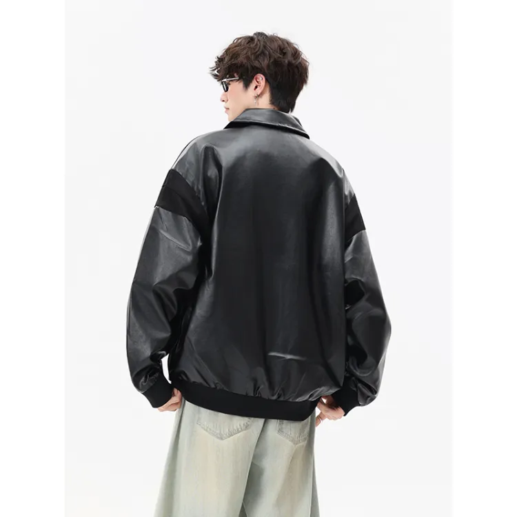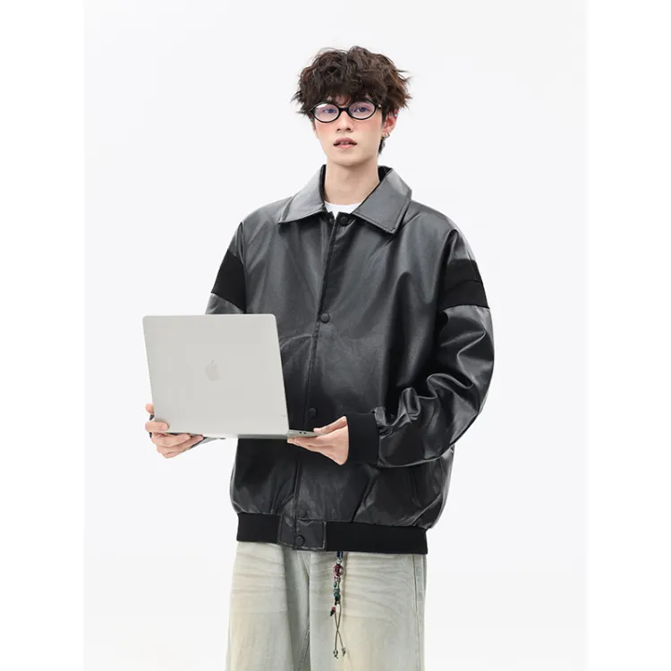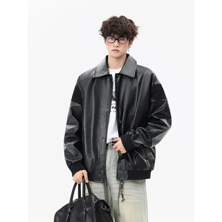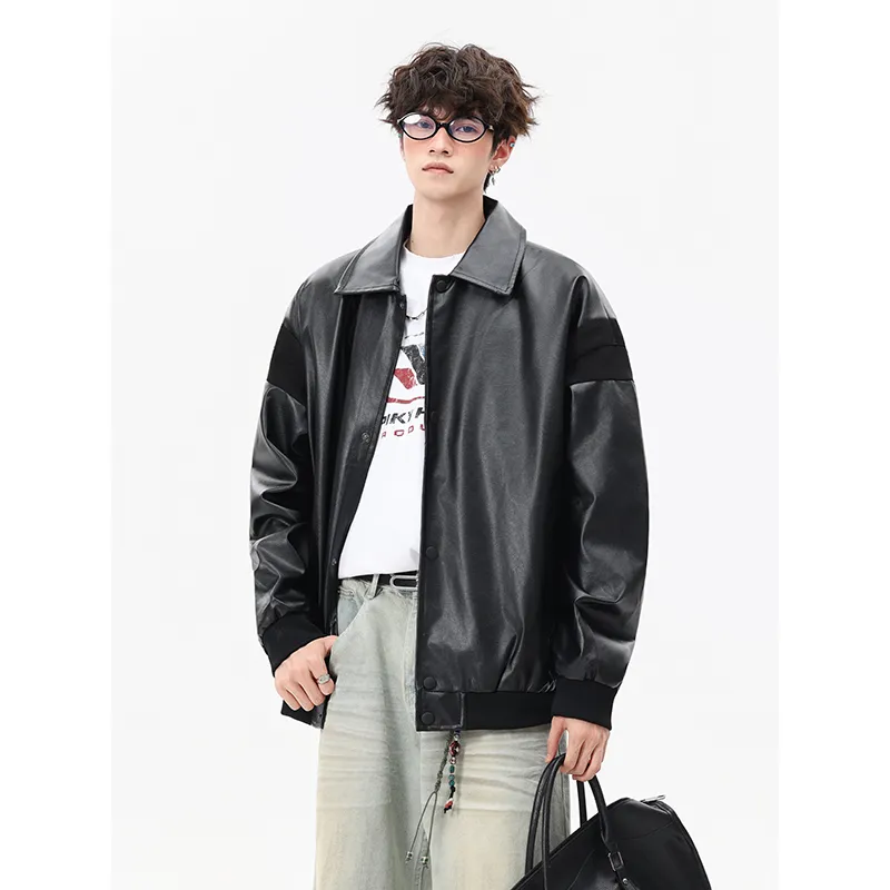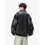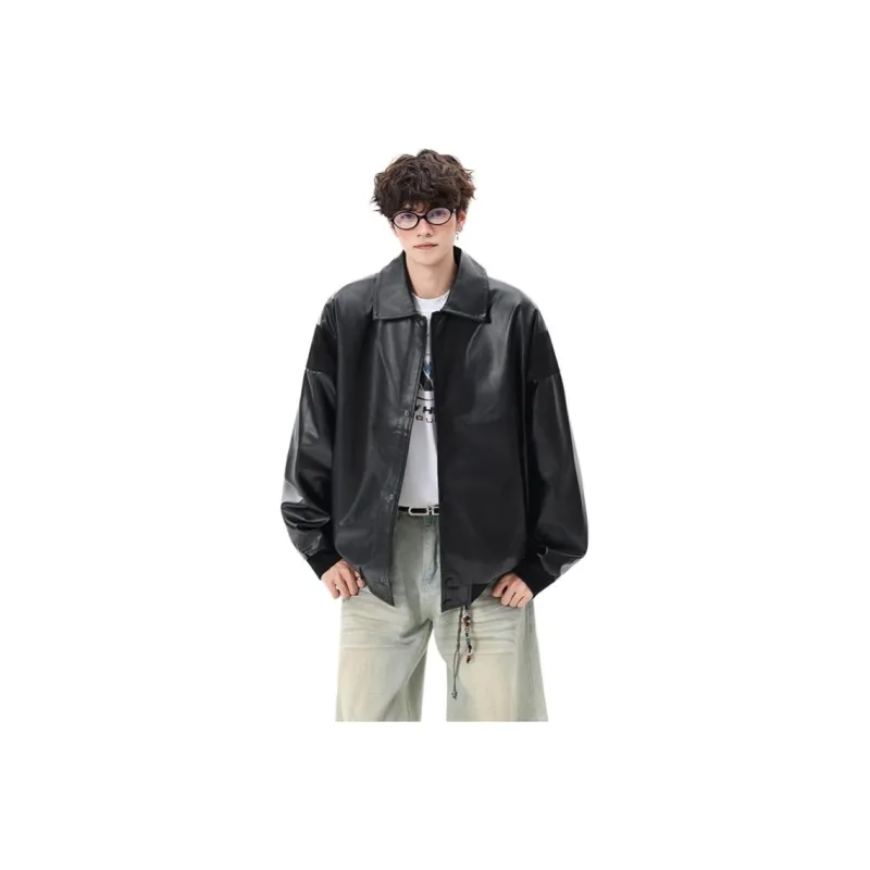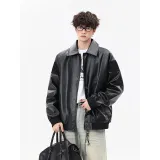 CariteSport Отложной воротник кожа куртка пальто унисекс
