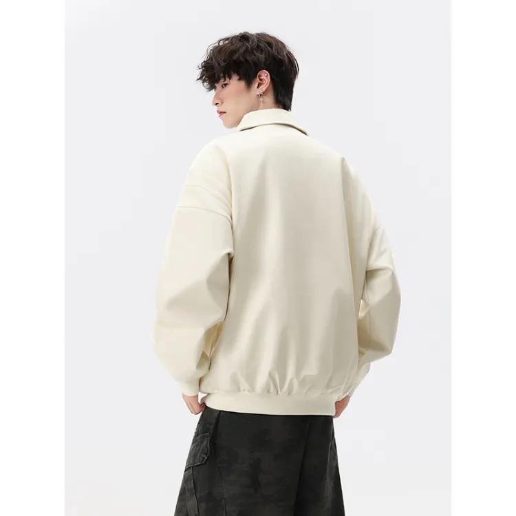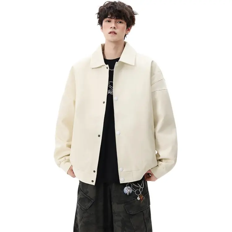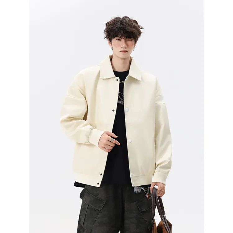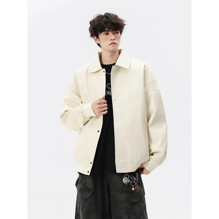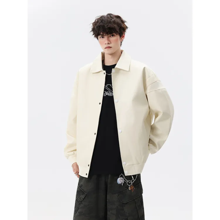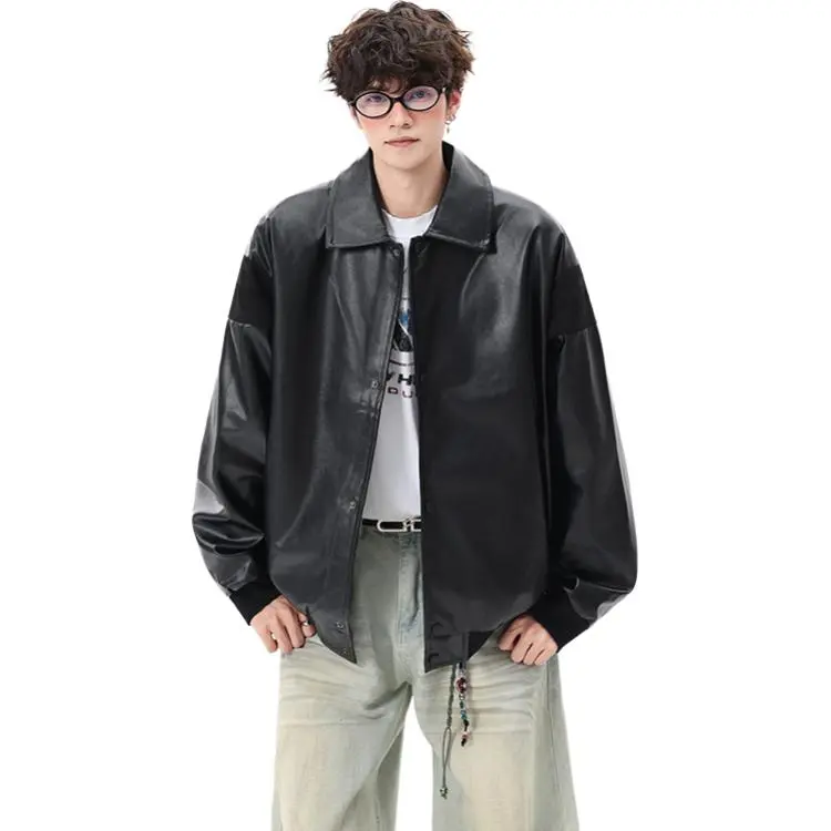 CariteSport Отложной воротник кожа куртка пальто унисекс