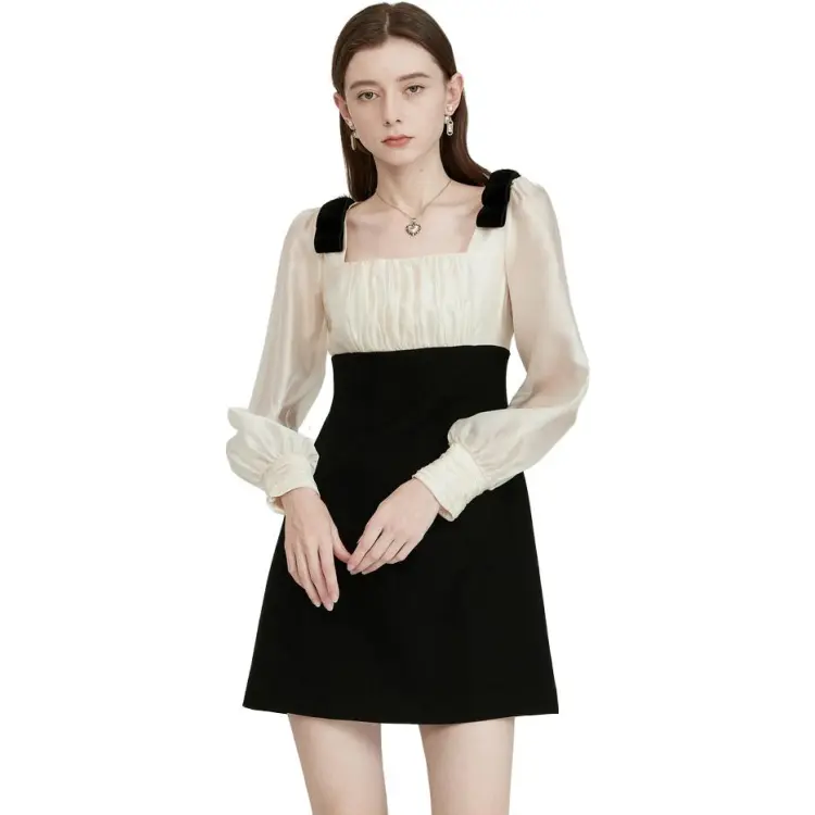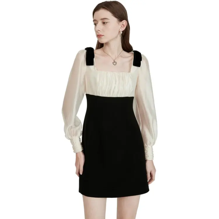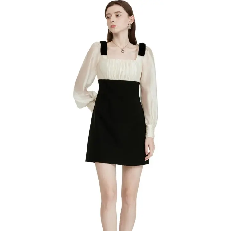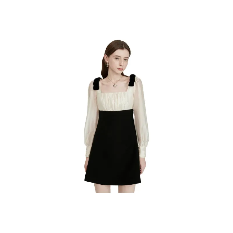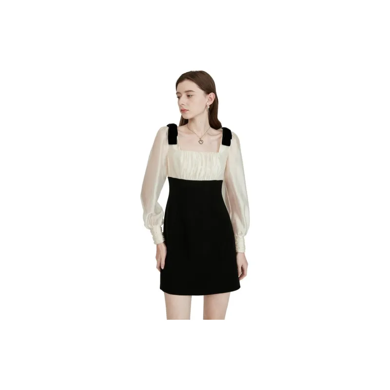 Caroline Черное Женское Длинное Платье с Рукавами