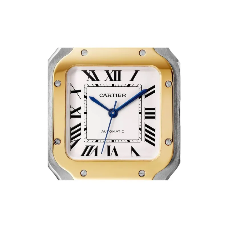 Cartier Часы Santos De Cartier Модель Среднего Размера, Механизм С Автоматическим Подзаводом, Желтое Золото, Сталь, Два Сменных Браслета: Металлический Браслет И Ремешок Из Кожи