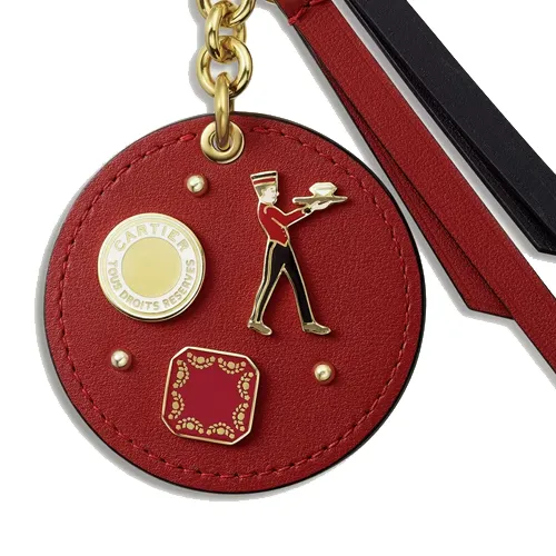 Cartier Брелок Для Ключей Diabolo De Cartier С Медальоном Телячья Кожа Красного И Черного Цветов, Позолоченная Отделка